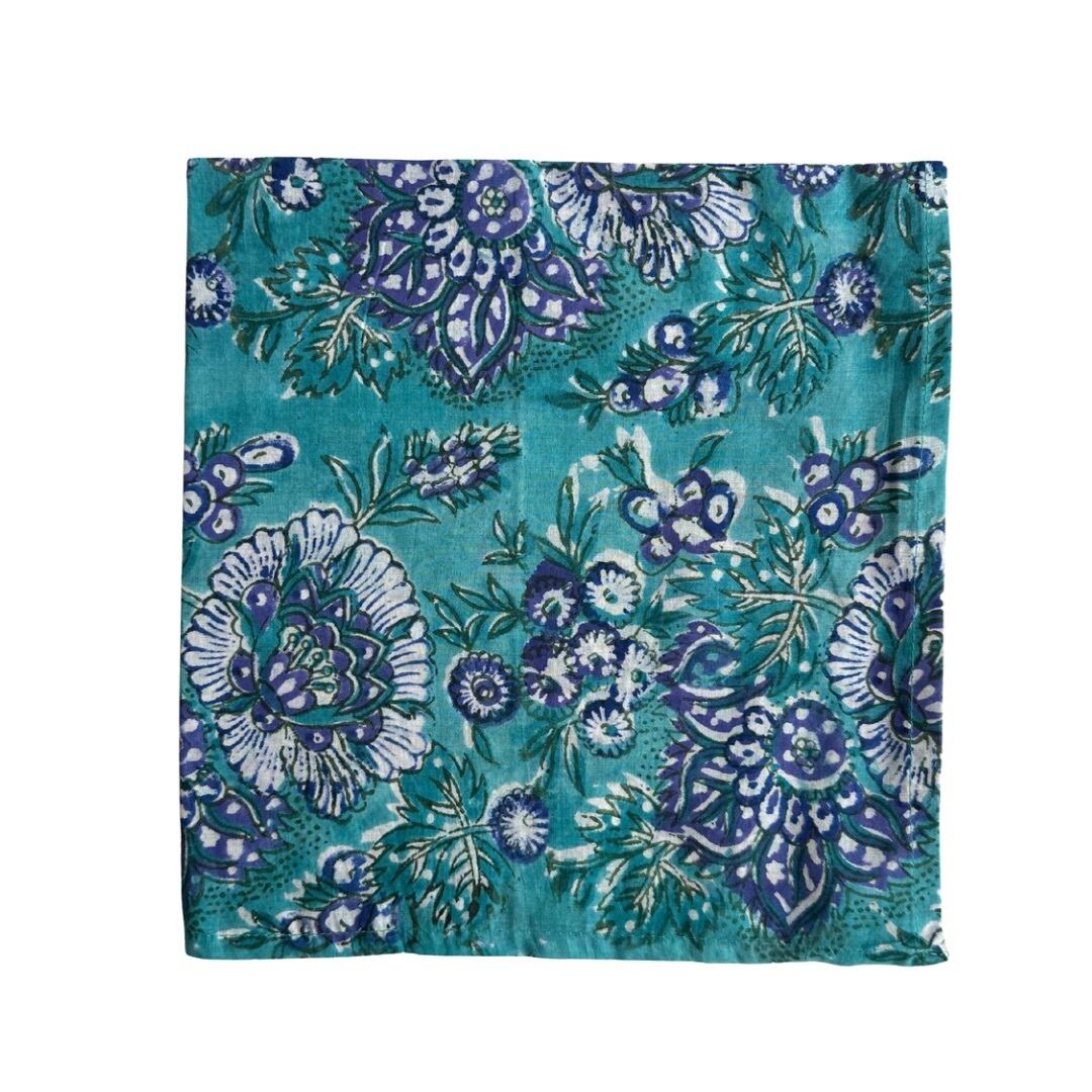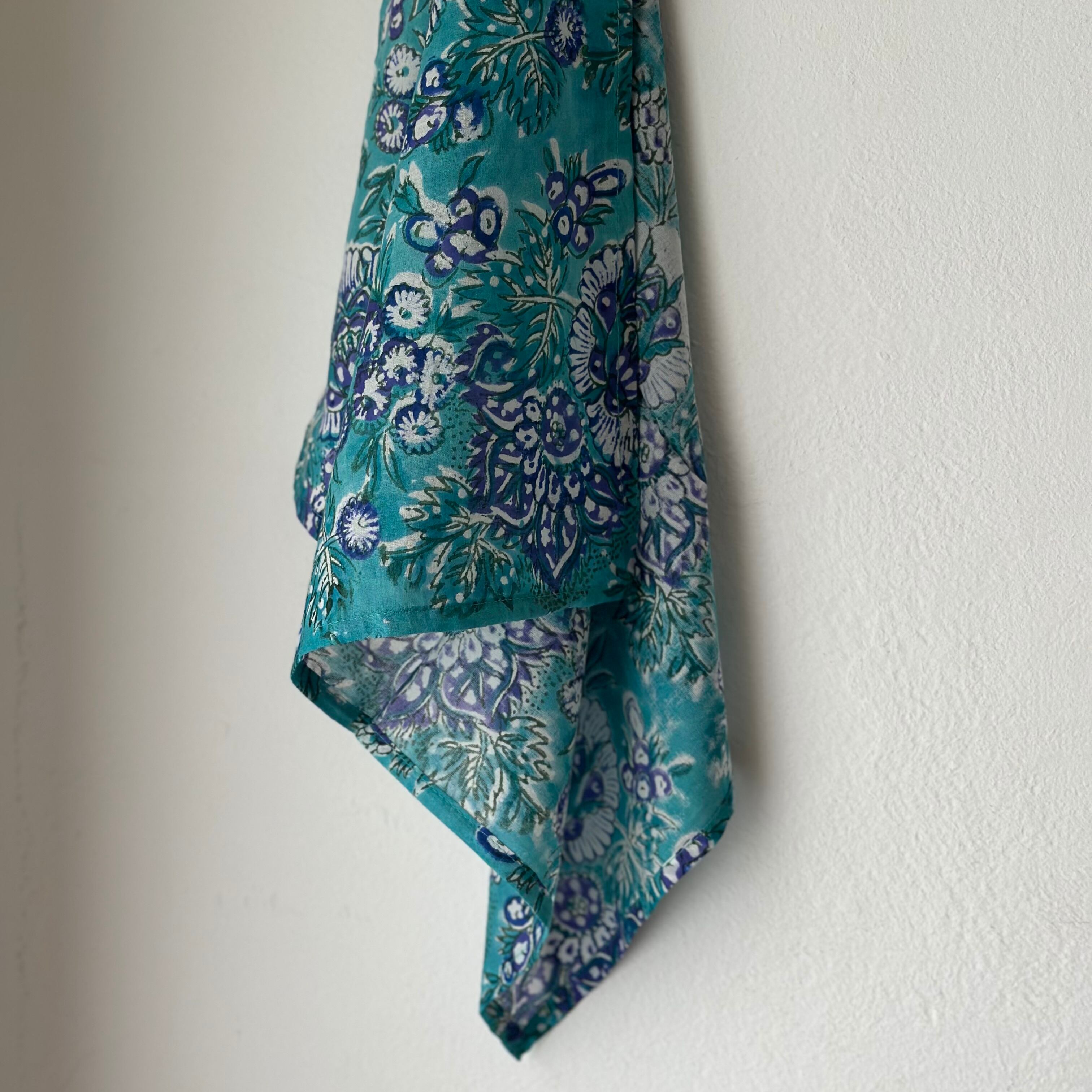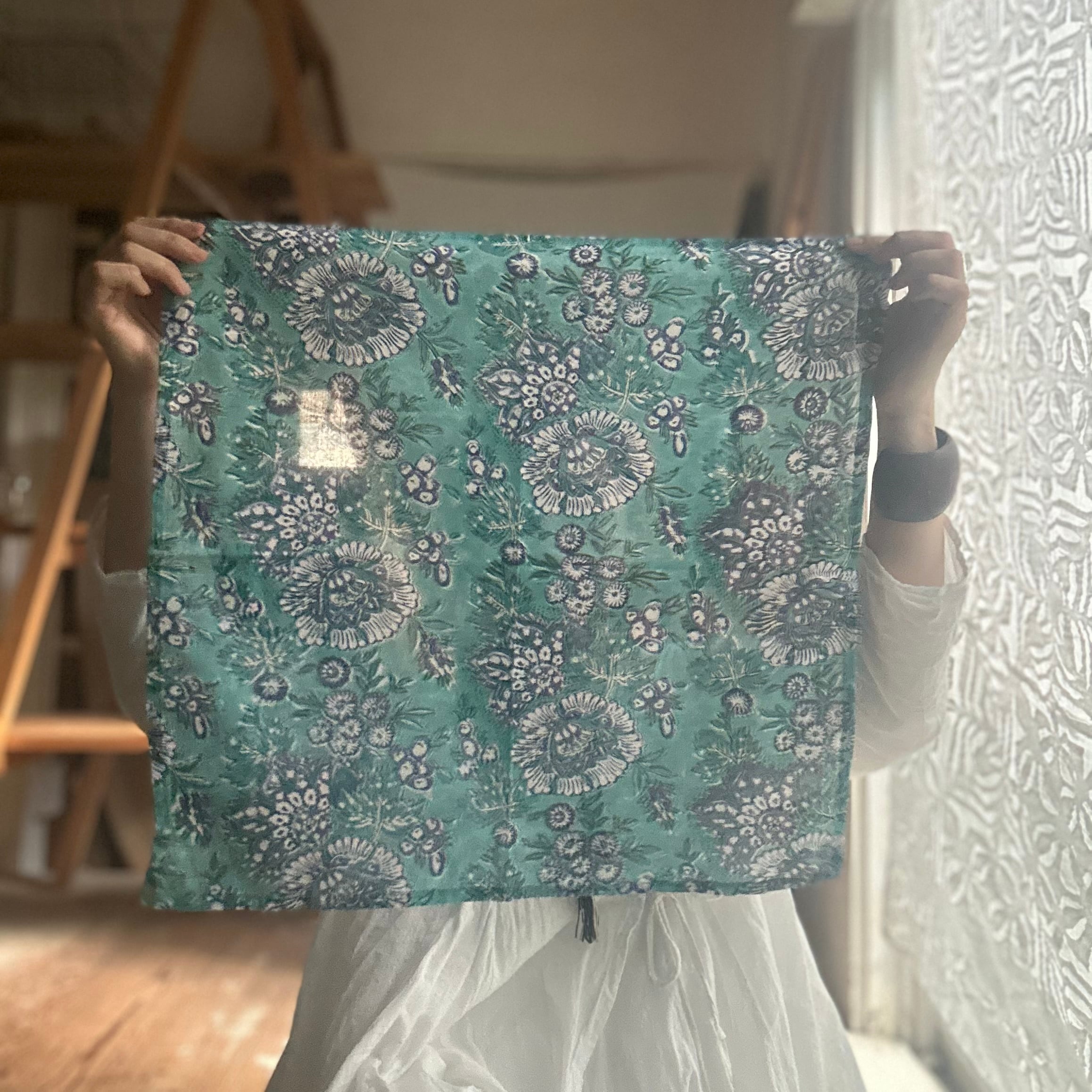 No.75 | インドの木版染めハンカチ || ブルー 青白花