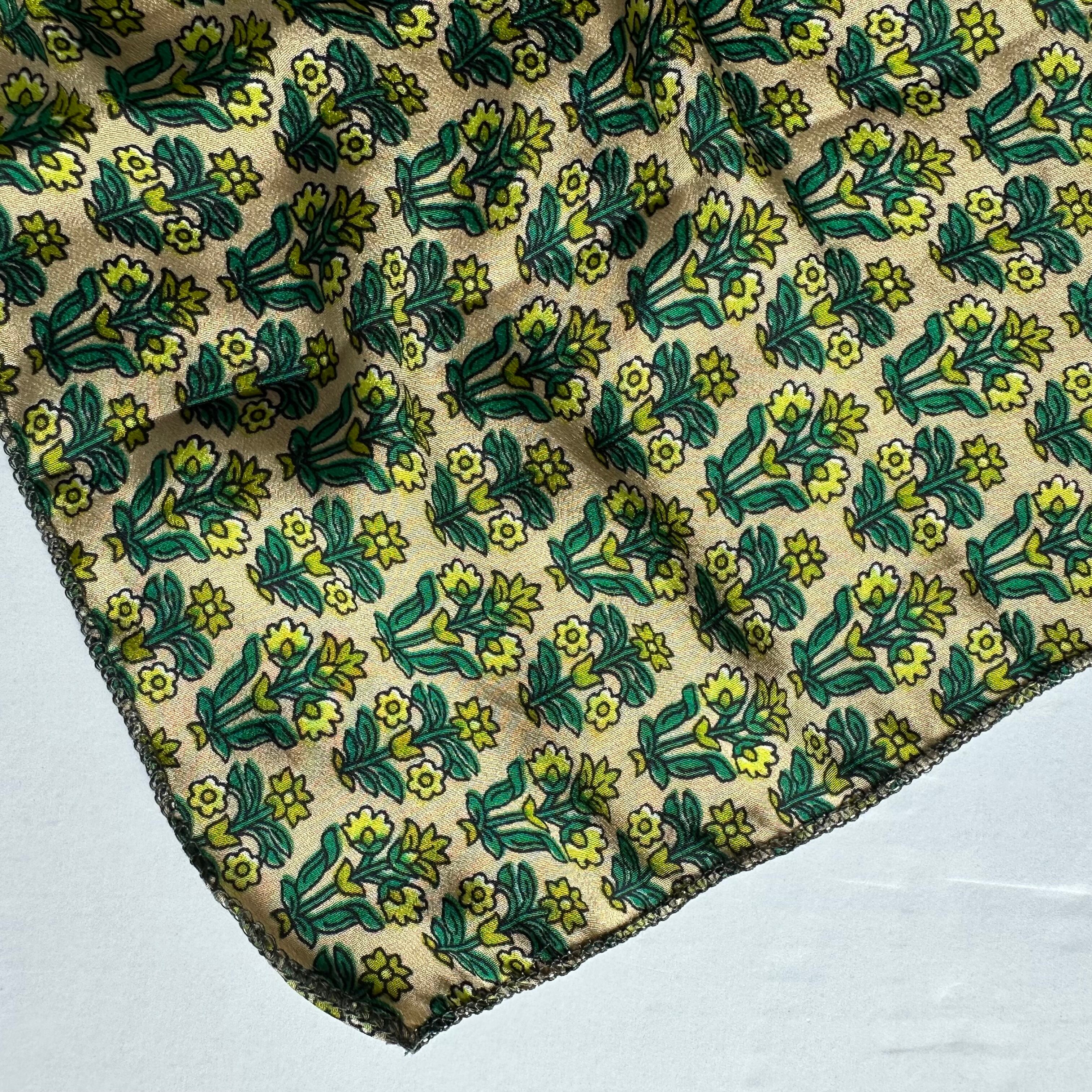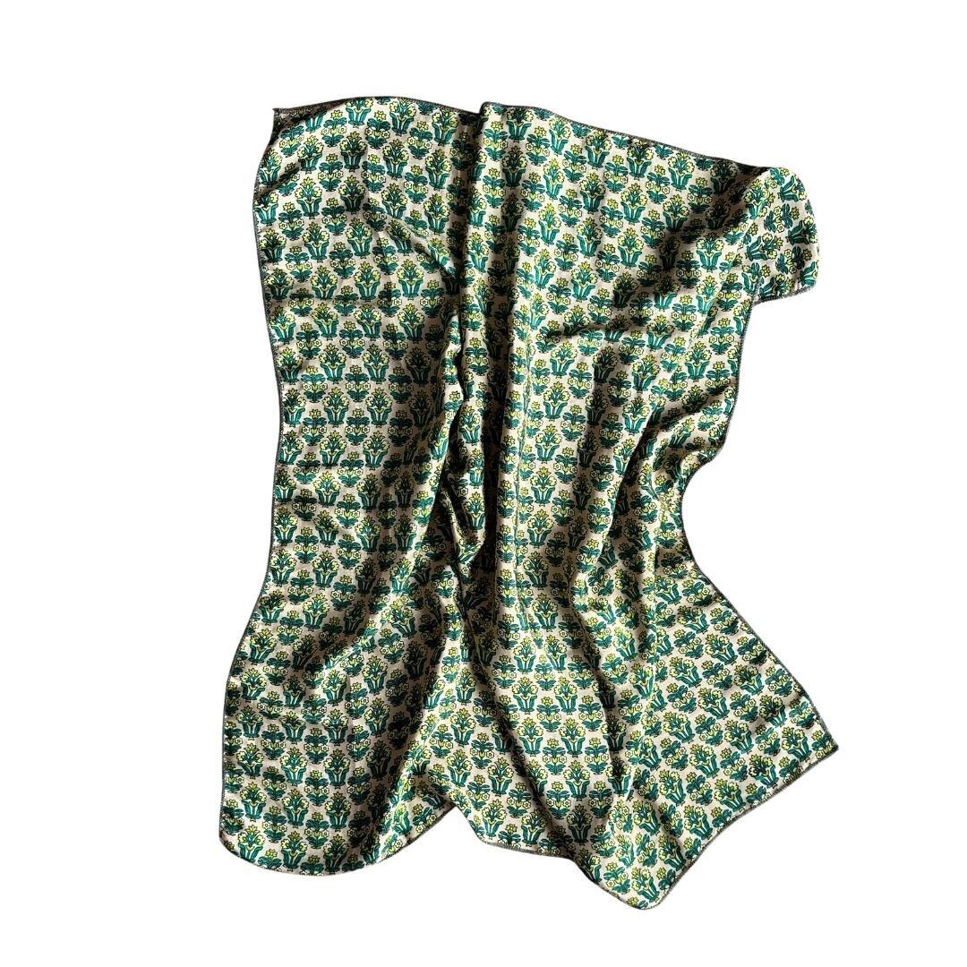 こちらのスカーフは、実際にインドの女性たちにまとわれていたサリーを再利用して仕立てています。