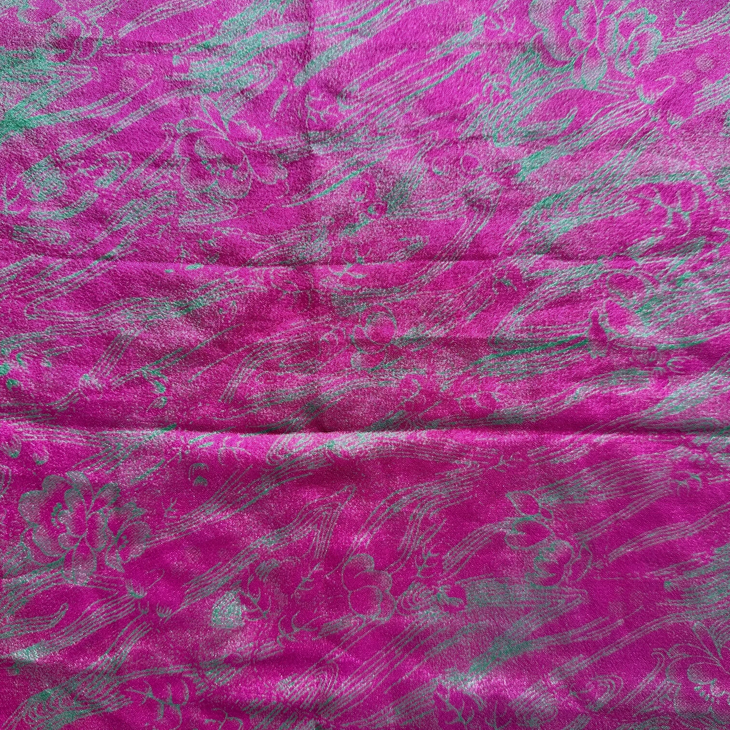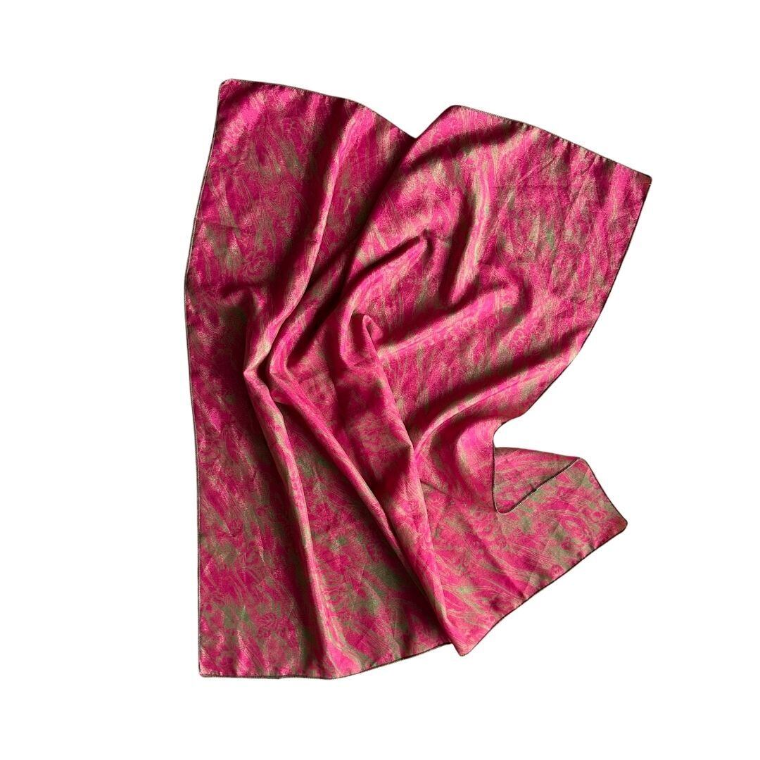 こちらのスカーフは、実際にインドの女性たちにまとわれていたサリーを再利用して仕立てています。