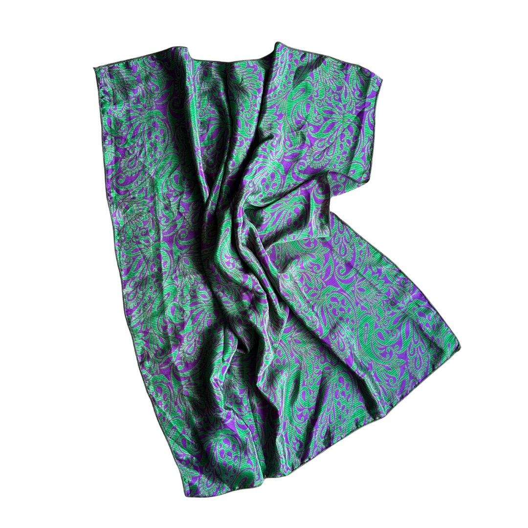こちらのスカーフは、実際にインドの女性たちにまとわれていたサリーを再利用して仕立てています。