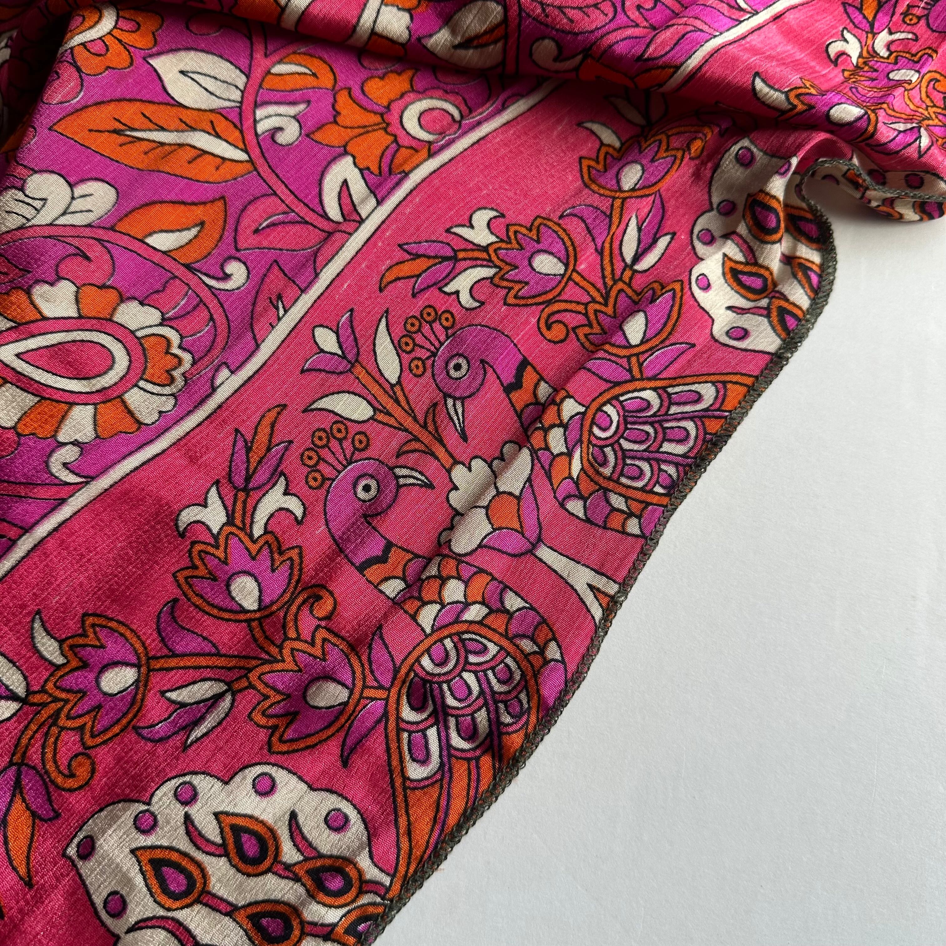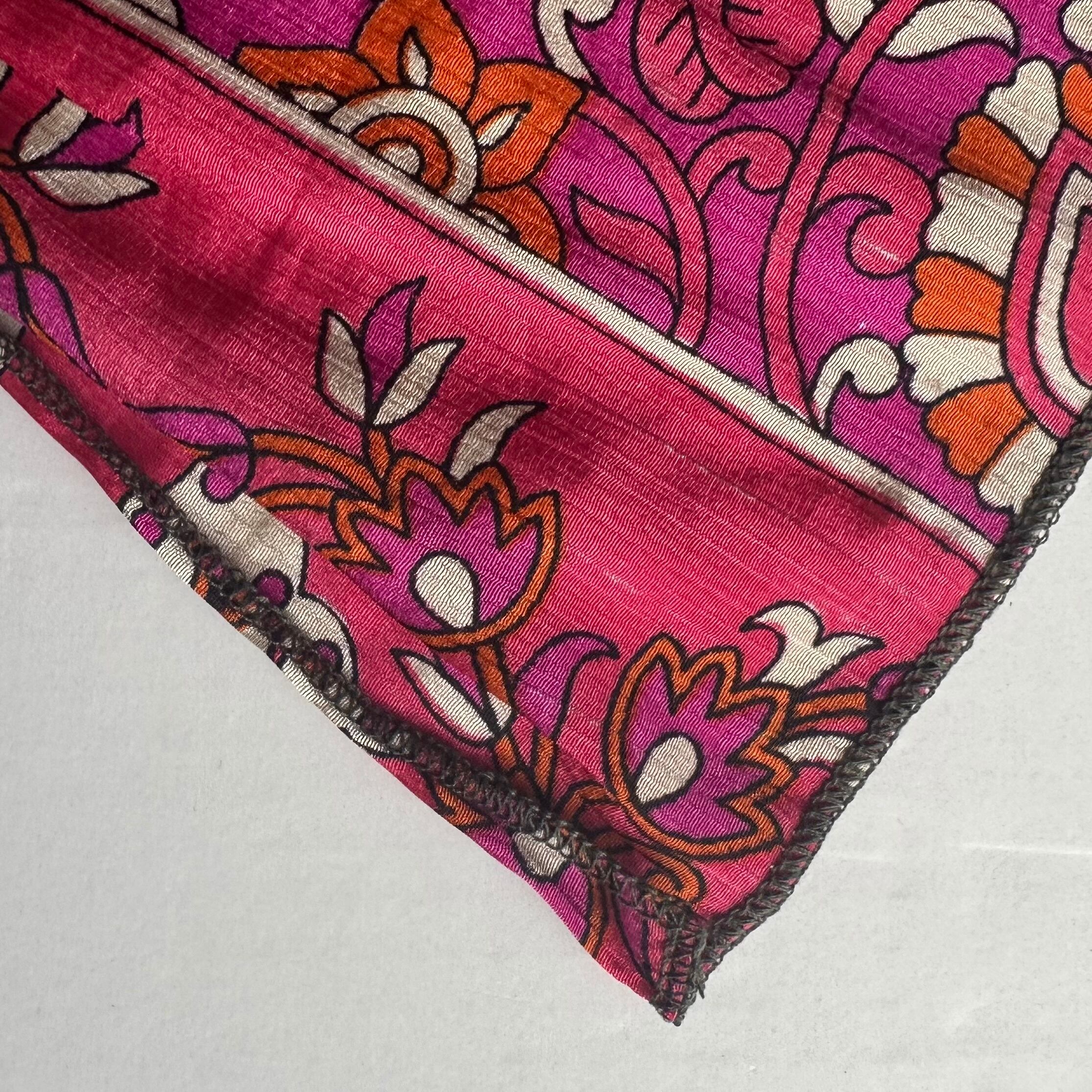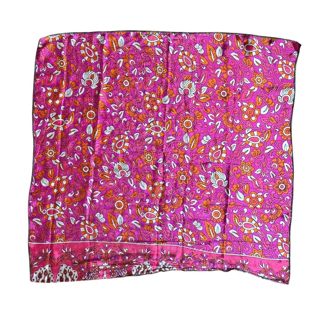 こちらのスカーフは、実際にインドの女性たちにまとわれていたサリーを再利用して仕立てています。