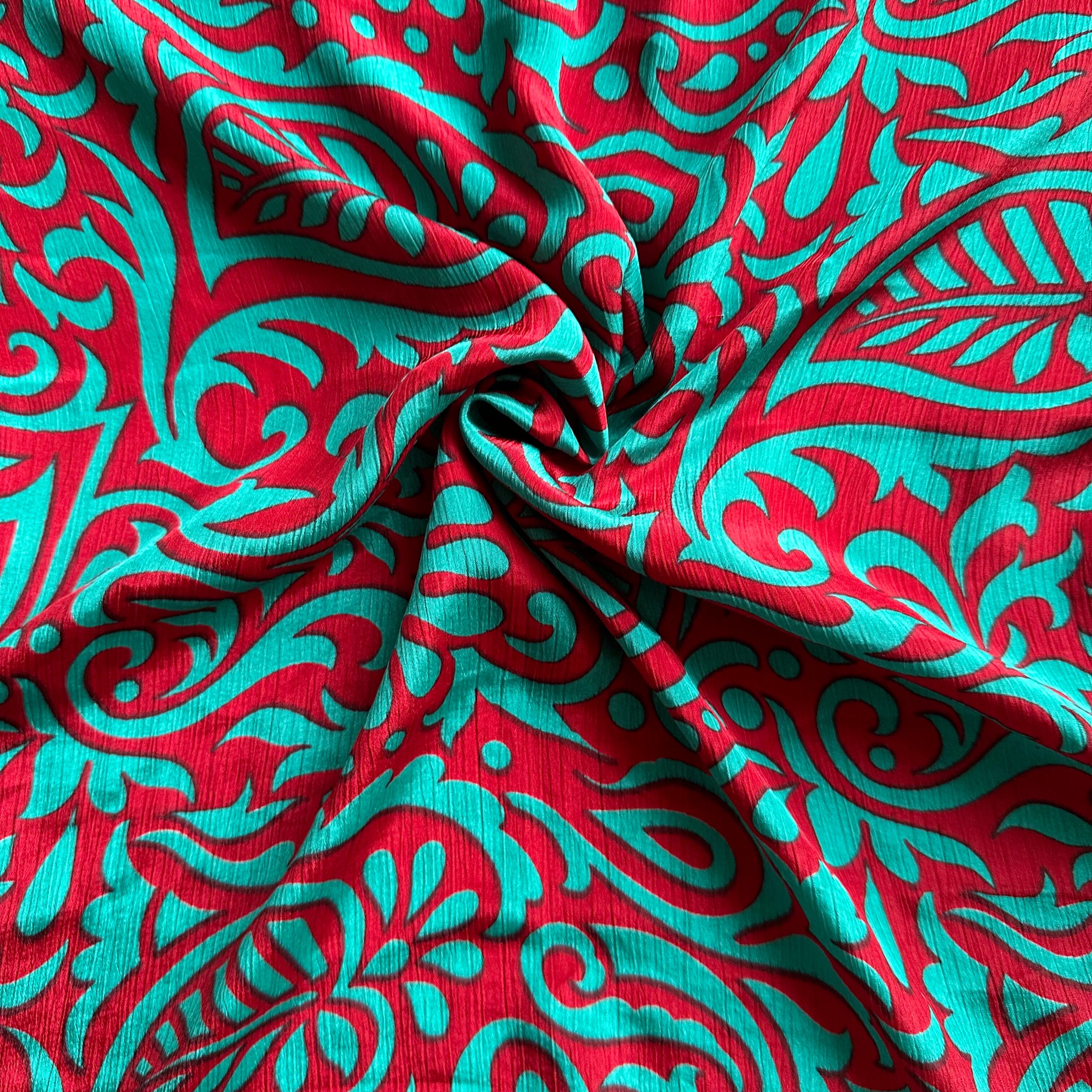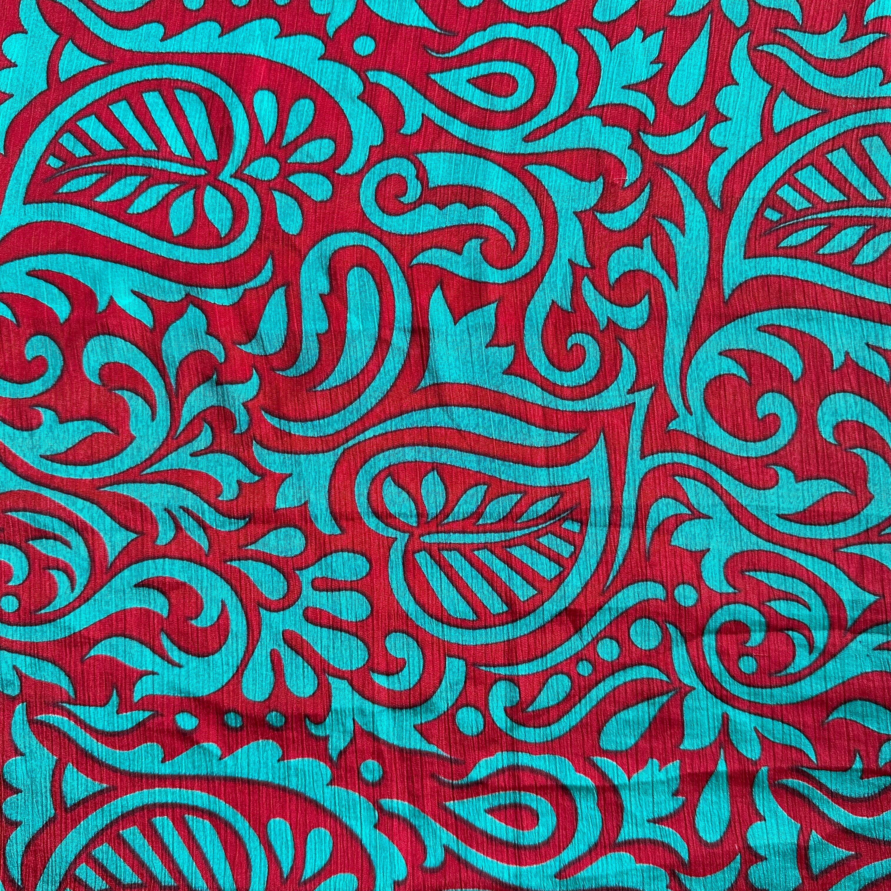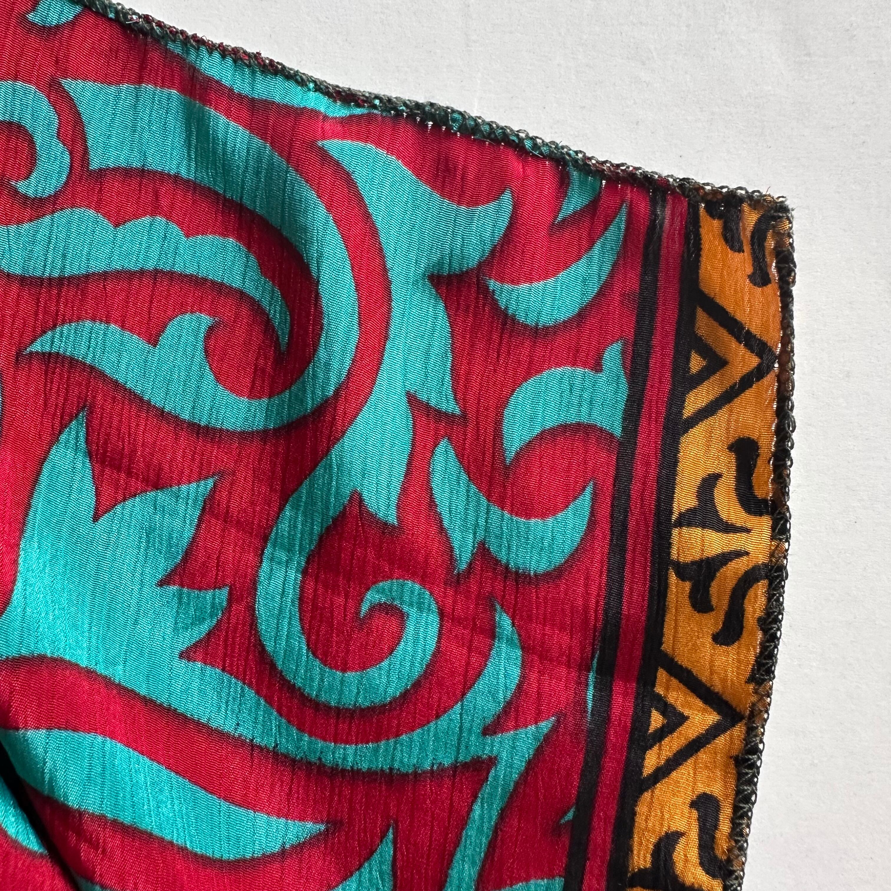 こちらのスカーフは、実際にインドの女性たちにまとわれていたサリーを再利用して仕立てています。