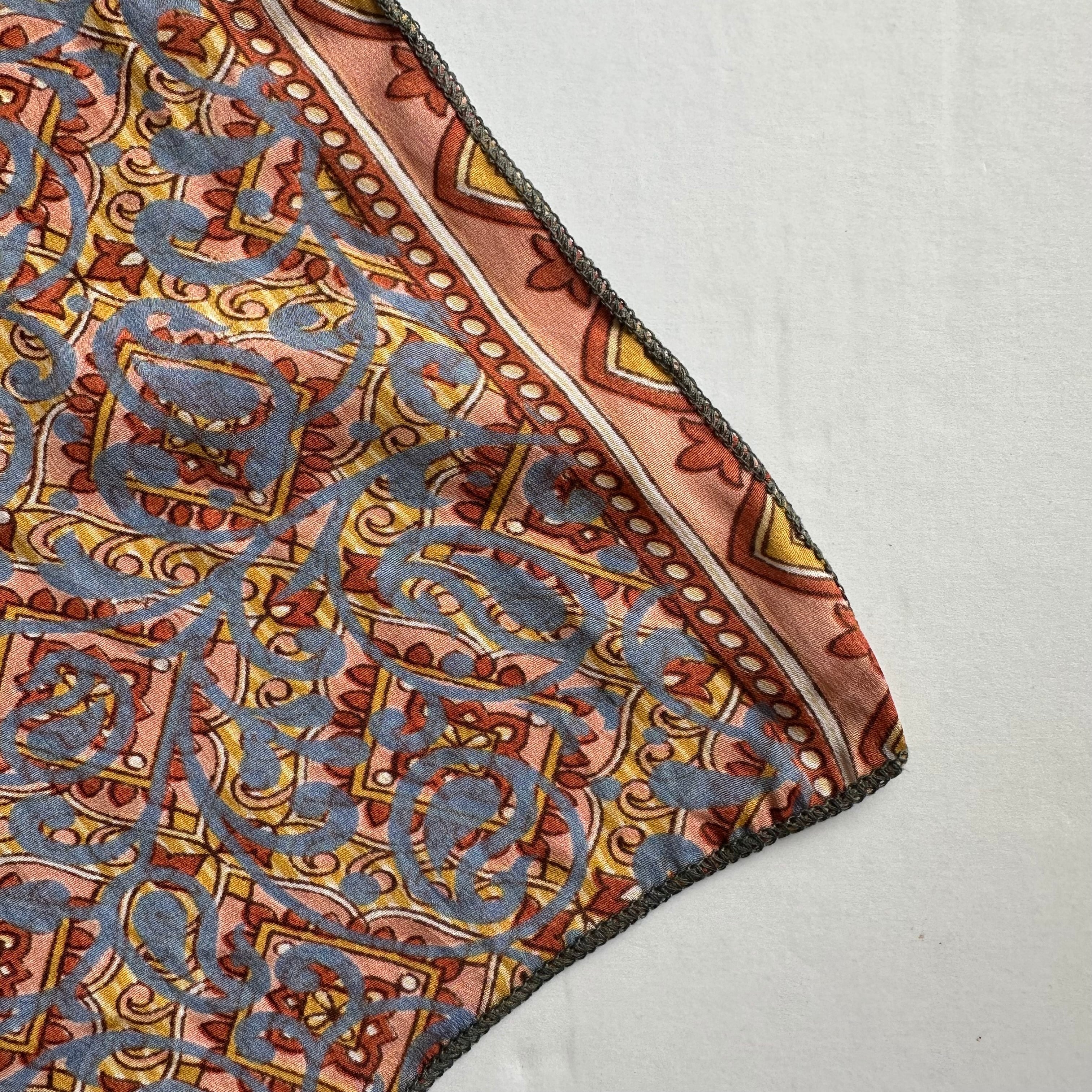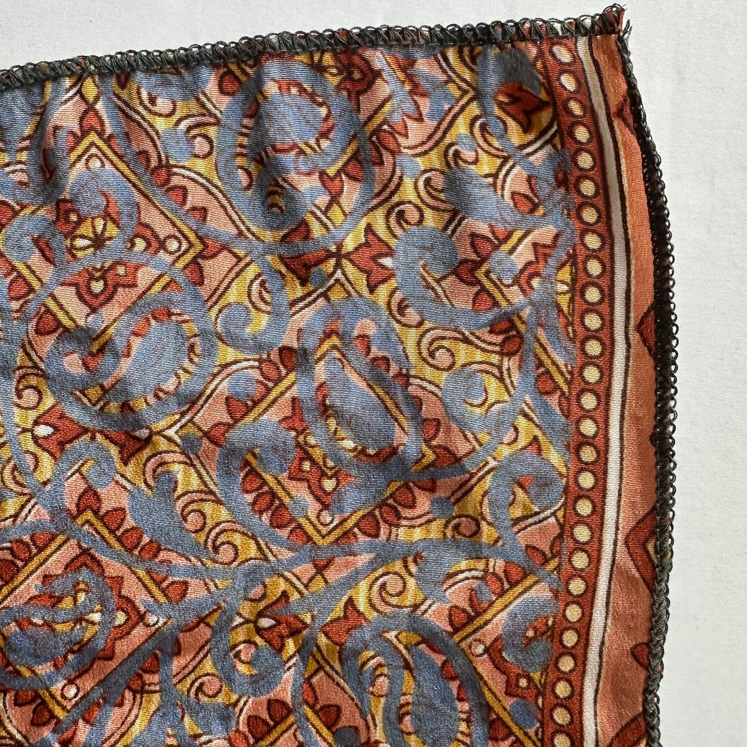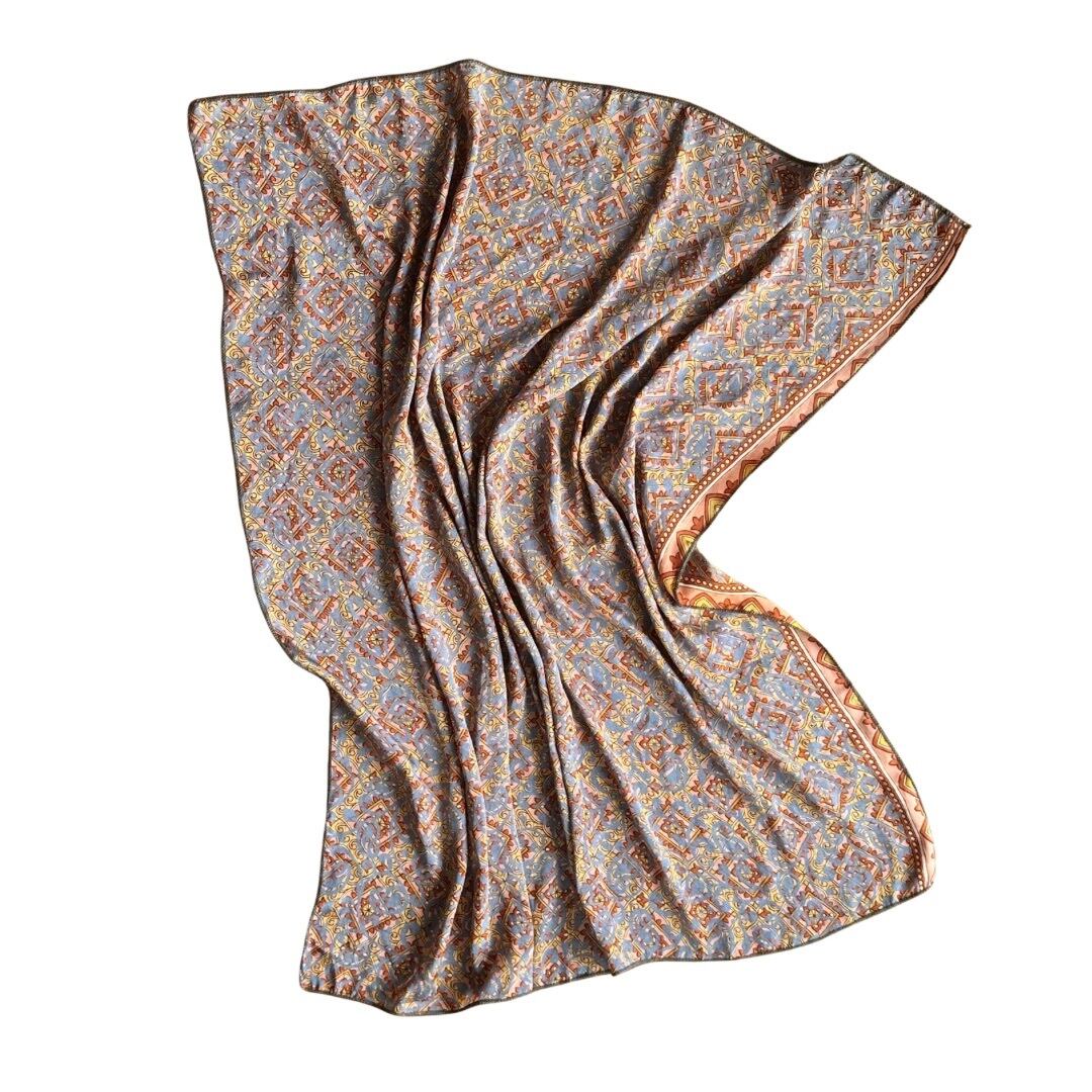こちらのスカーフは、実際にインドの女性たちにまとわれていたサリーを再利用して仕立てています。