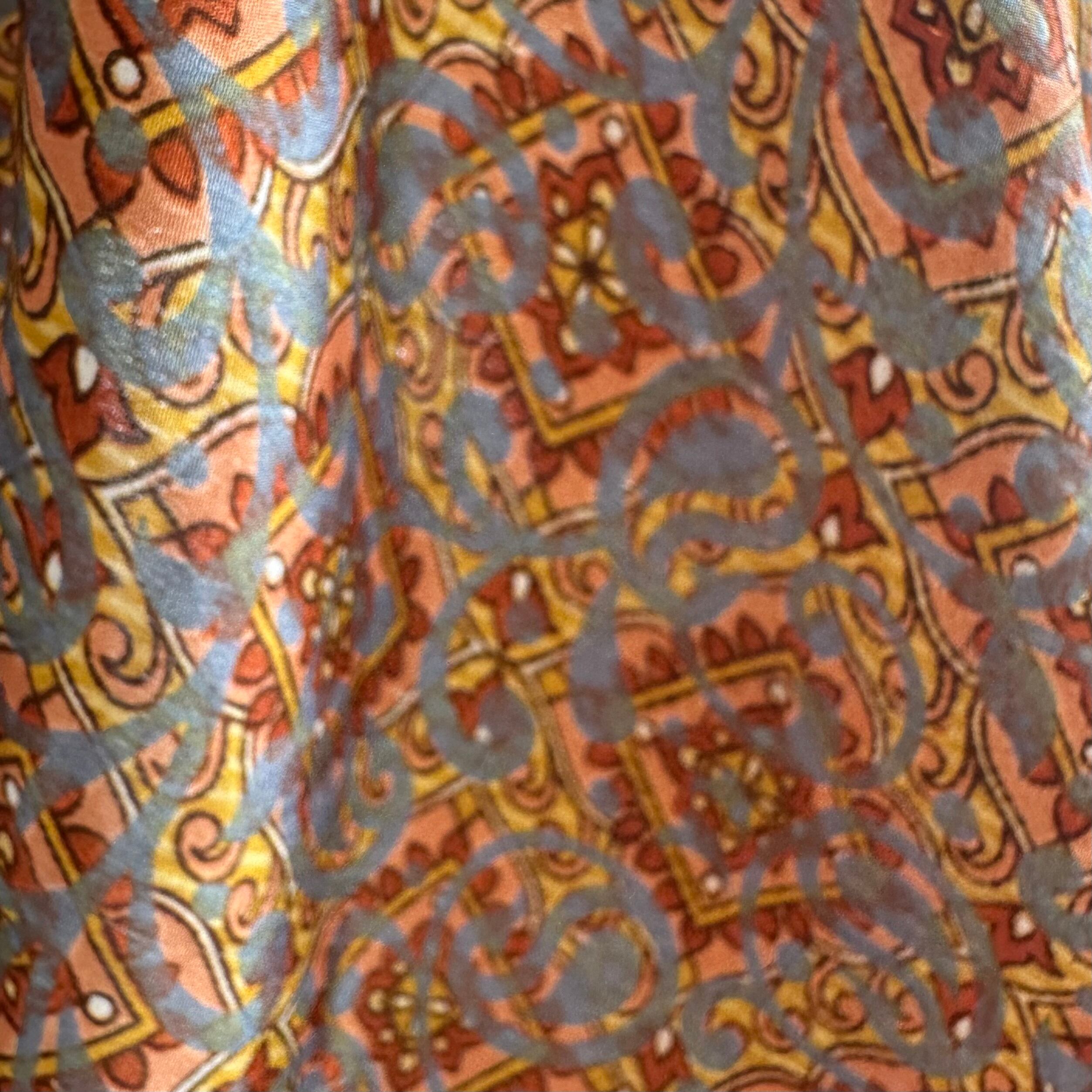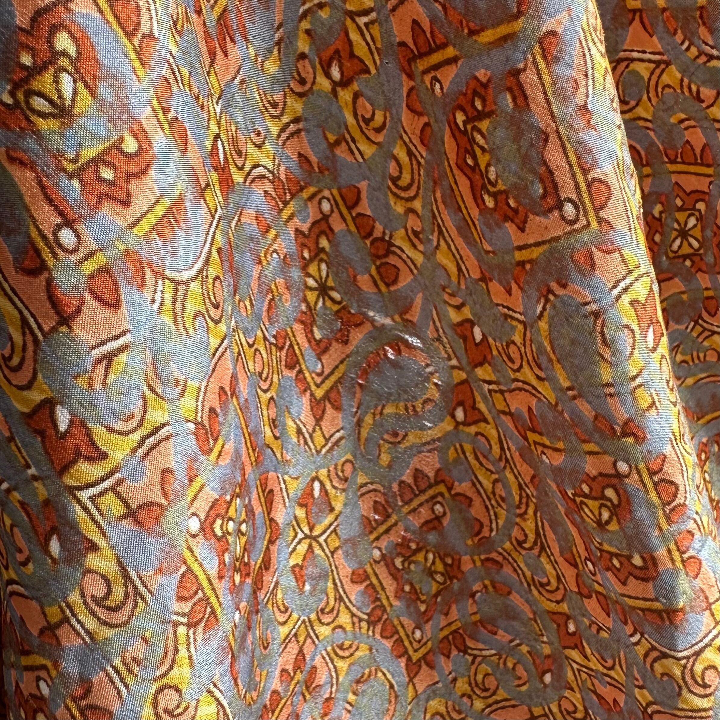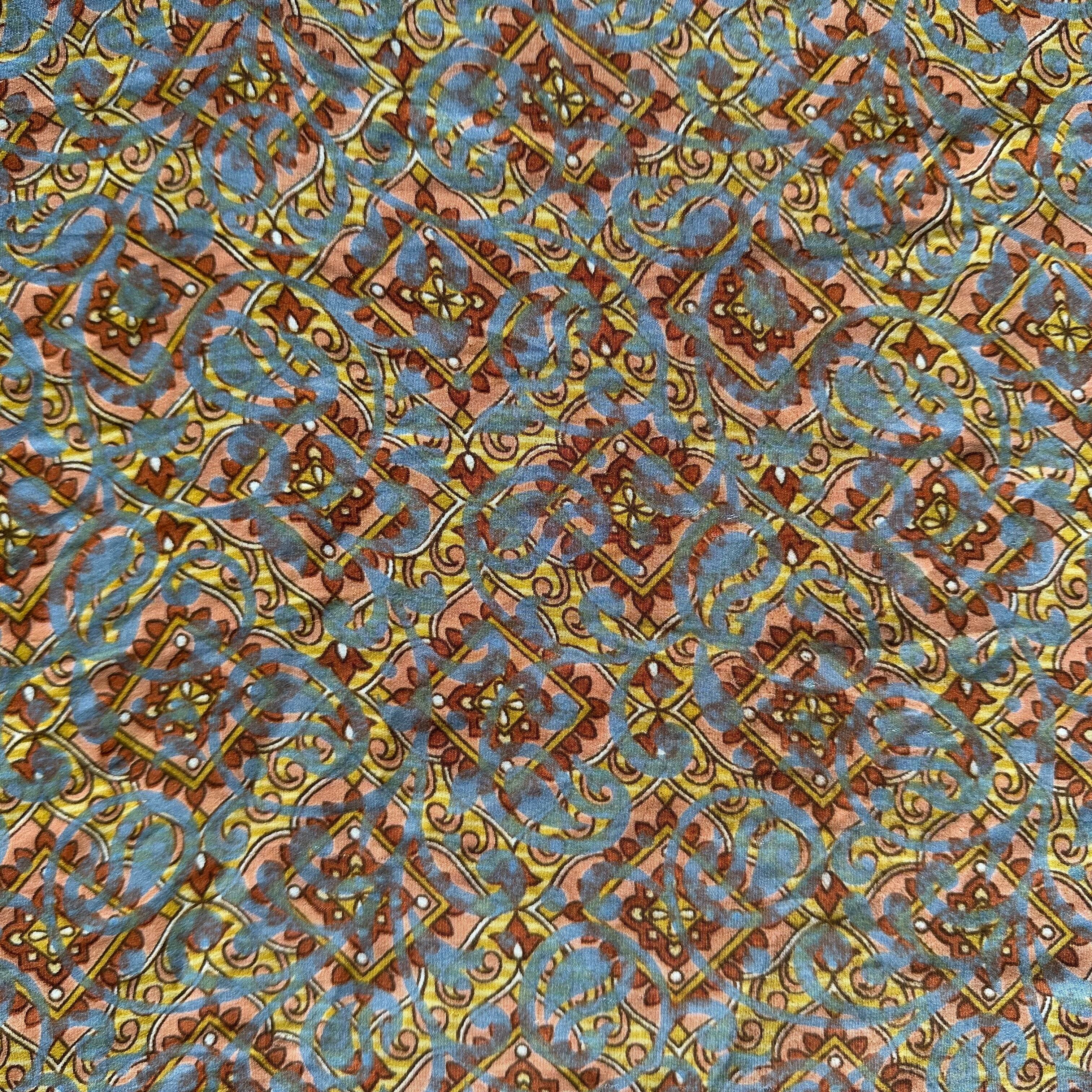 こちらのスカーフは、実際にインドの女性たちにまとわれていたサリーを再利用して仕立てています。