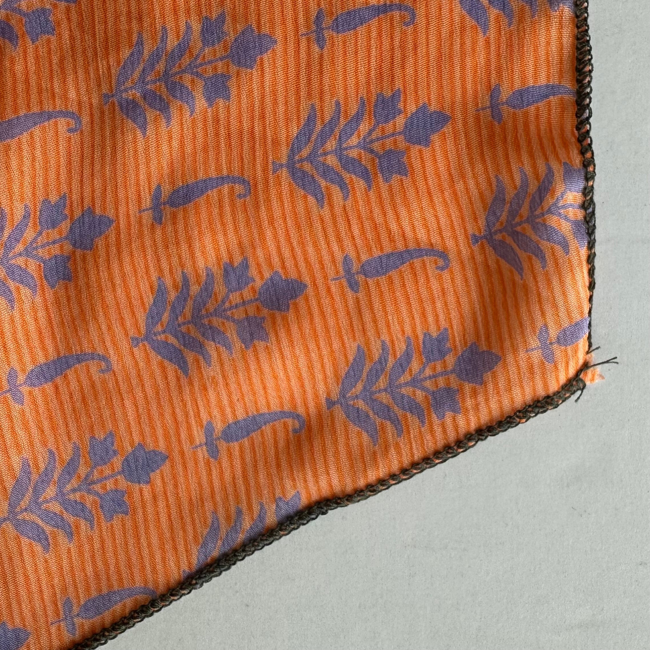 こちらのスカーフは、実際にインドの女性たちにまとわれていたサリーを再利用して仕立てています。