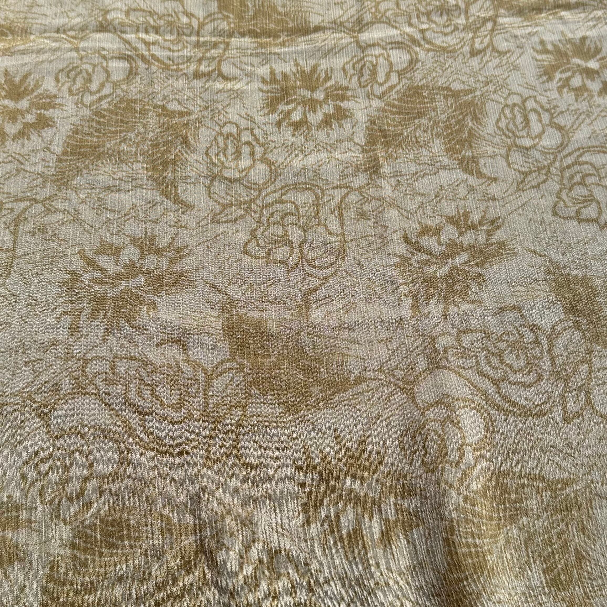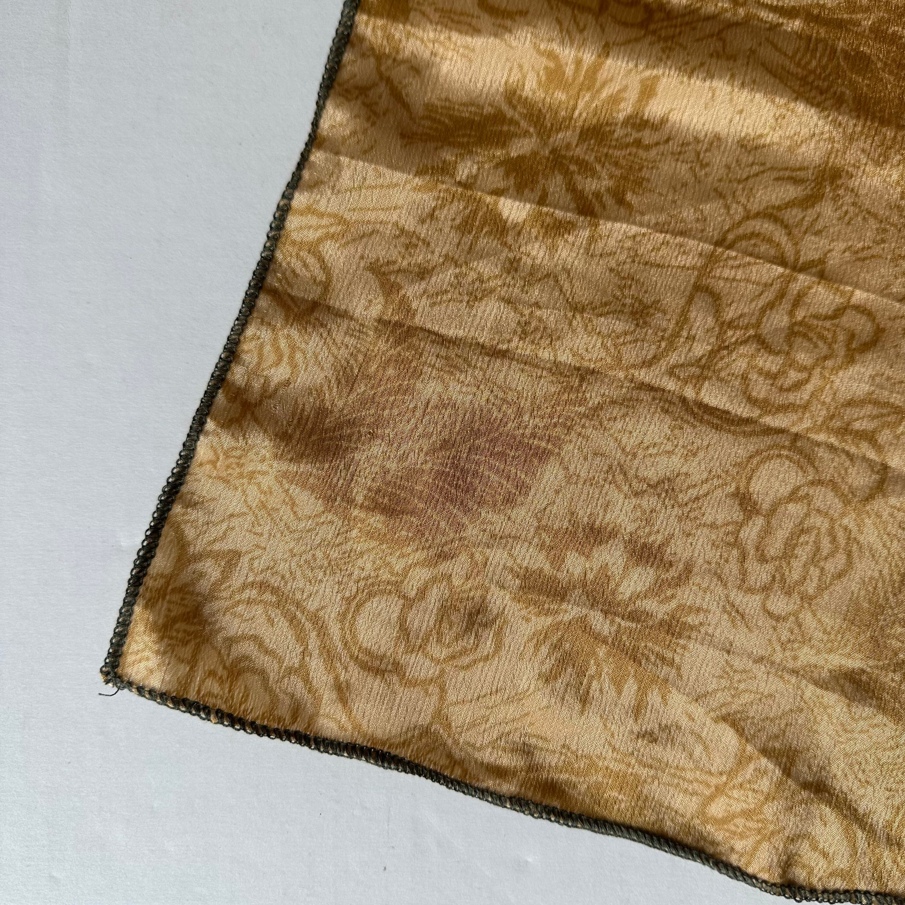 こちらのスカーフは、実際にインドの女性たちにまとわれていたサリーを再利用して仕立てています。