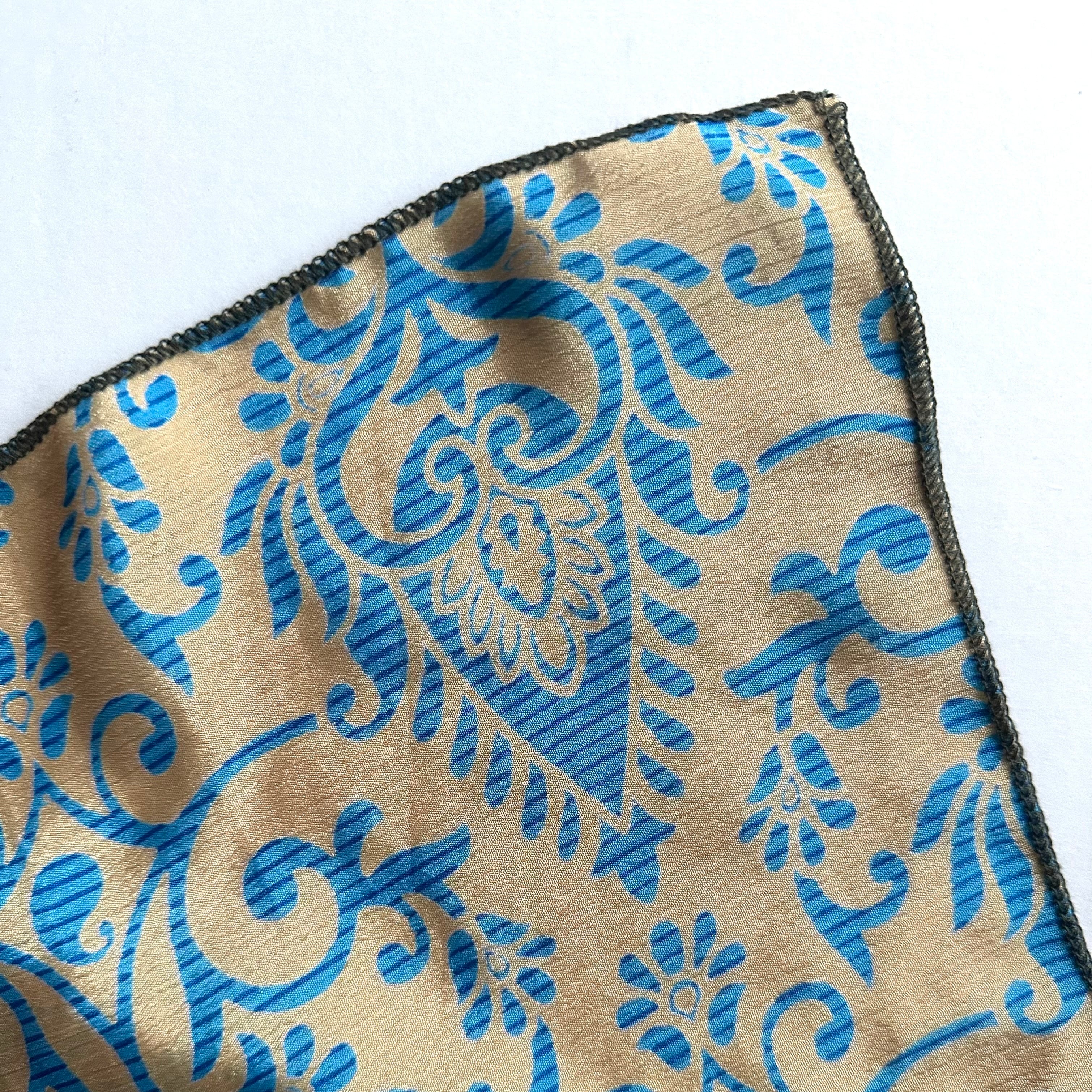 こちらのスカーフは、実際にインドの女性たちにまとわれていたサリーを再利用して仕立てています。