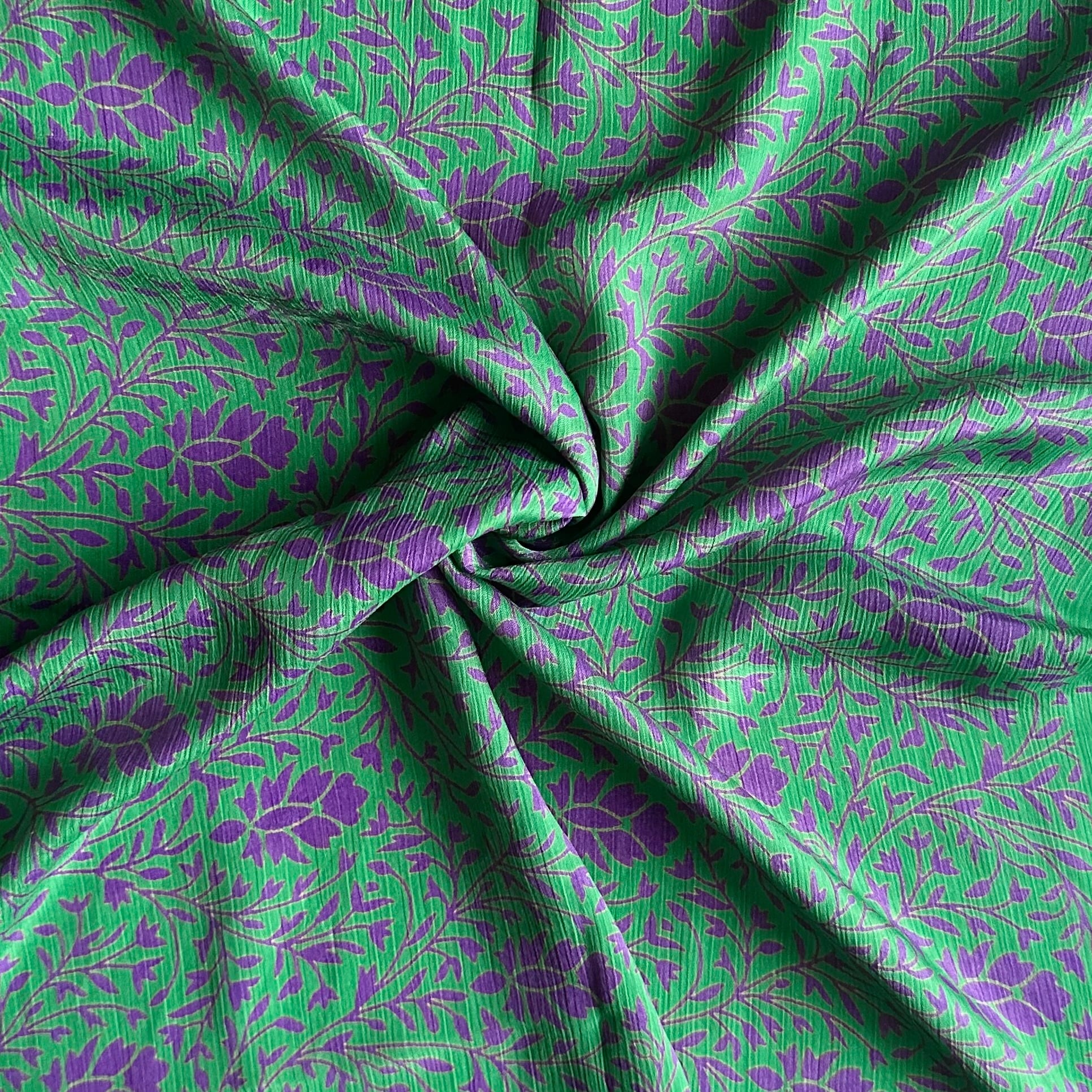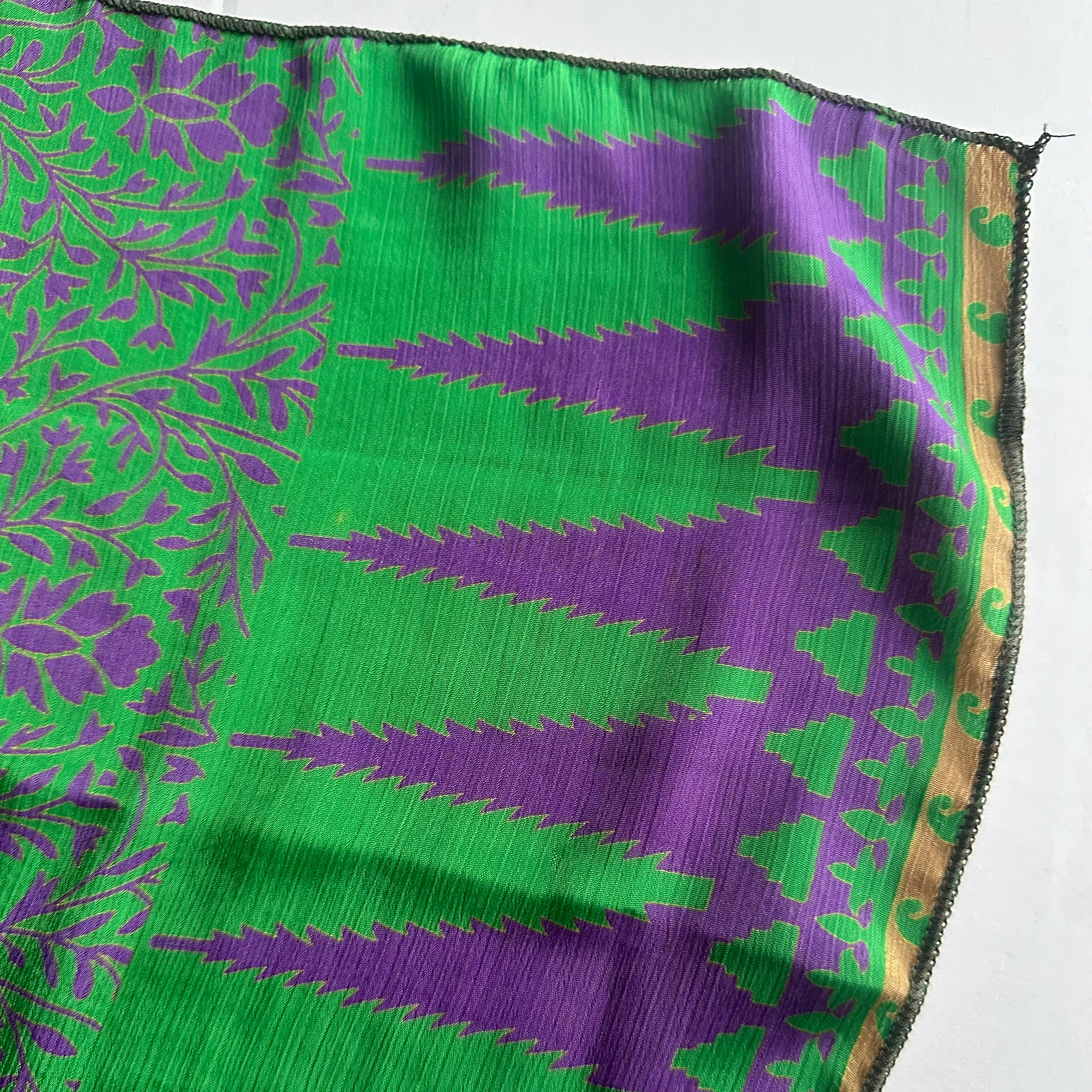 こちらのスカーフは、実際にインドの女性たちにまとわれていたサリーを再利用して仕立てています。