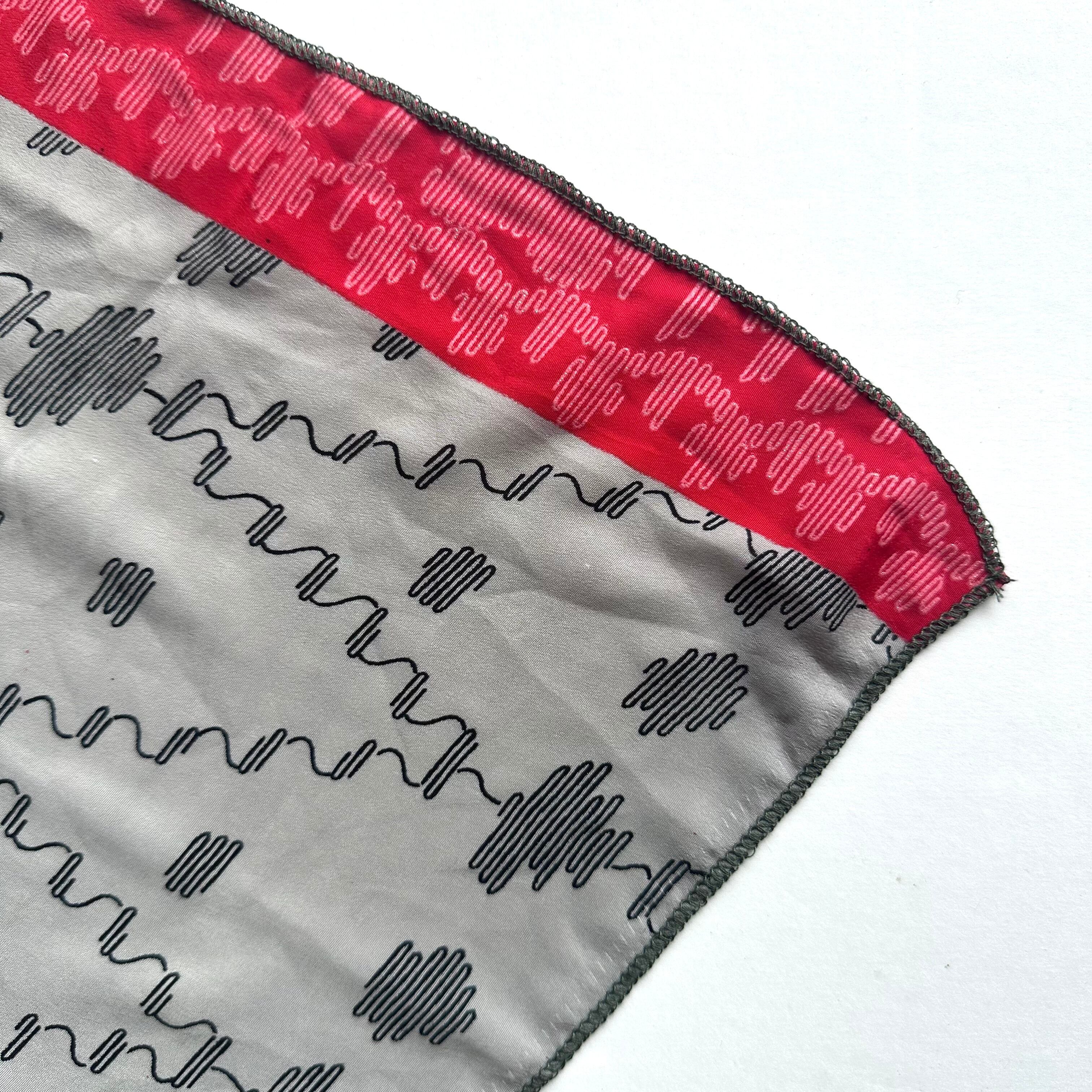 こちらのスカーフは、実際にインドの女性たちにまとわれていたサリーを再利用して仕立てています。