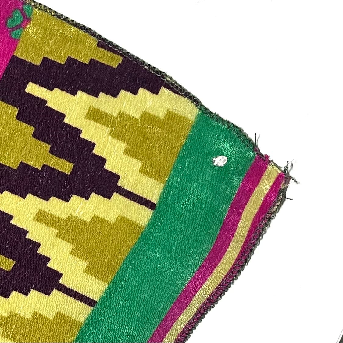 こちらのスカーフは、実際にインドの女性たちにまとわれていたサリーを再利用して仕立てています。