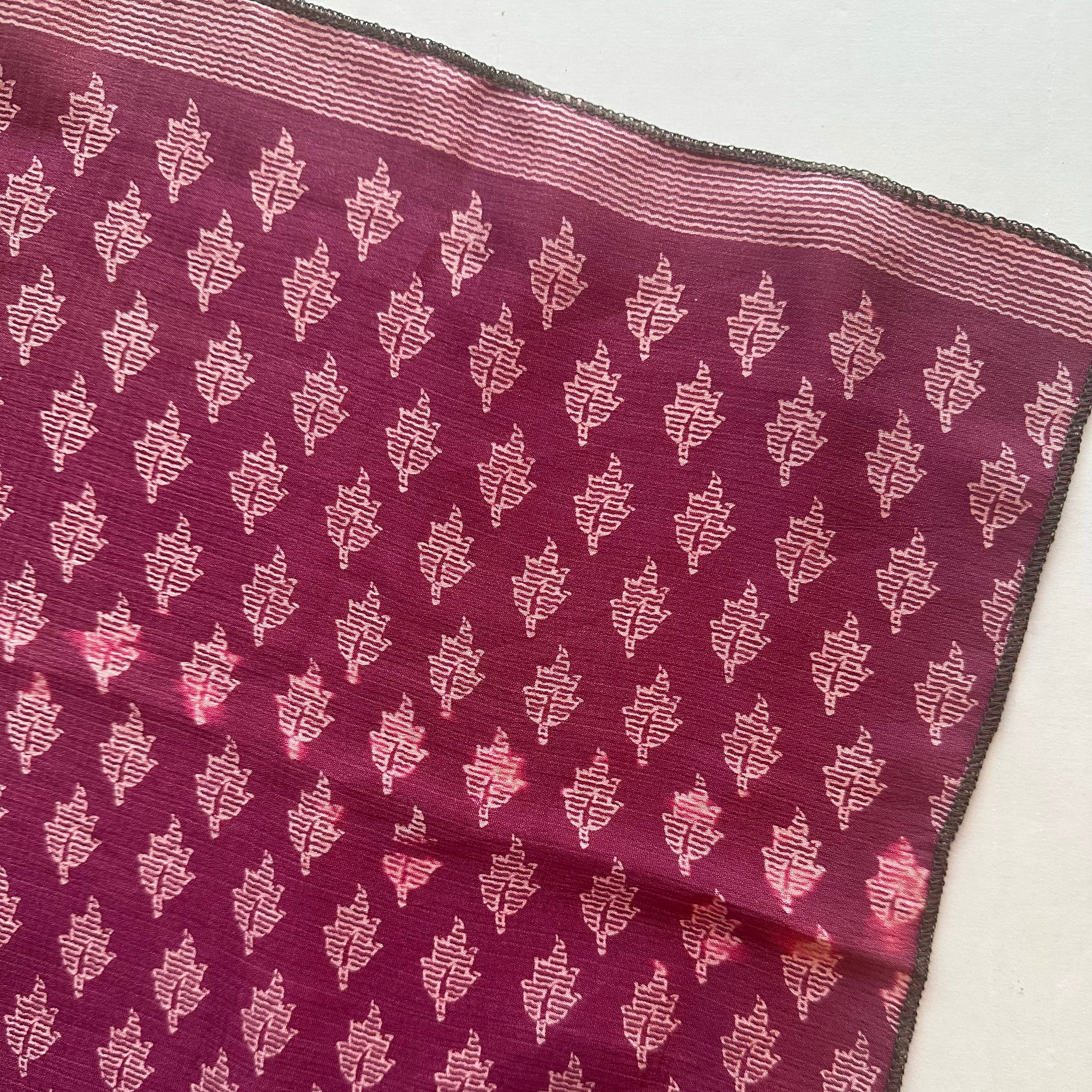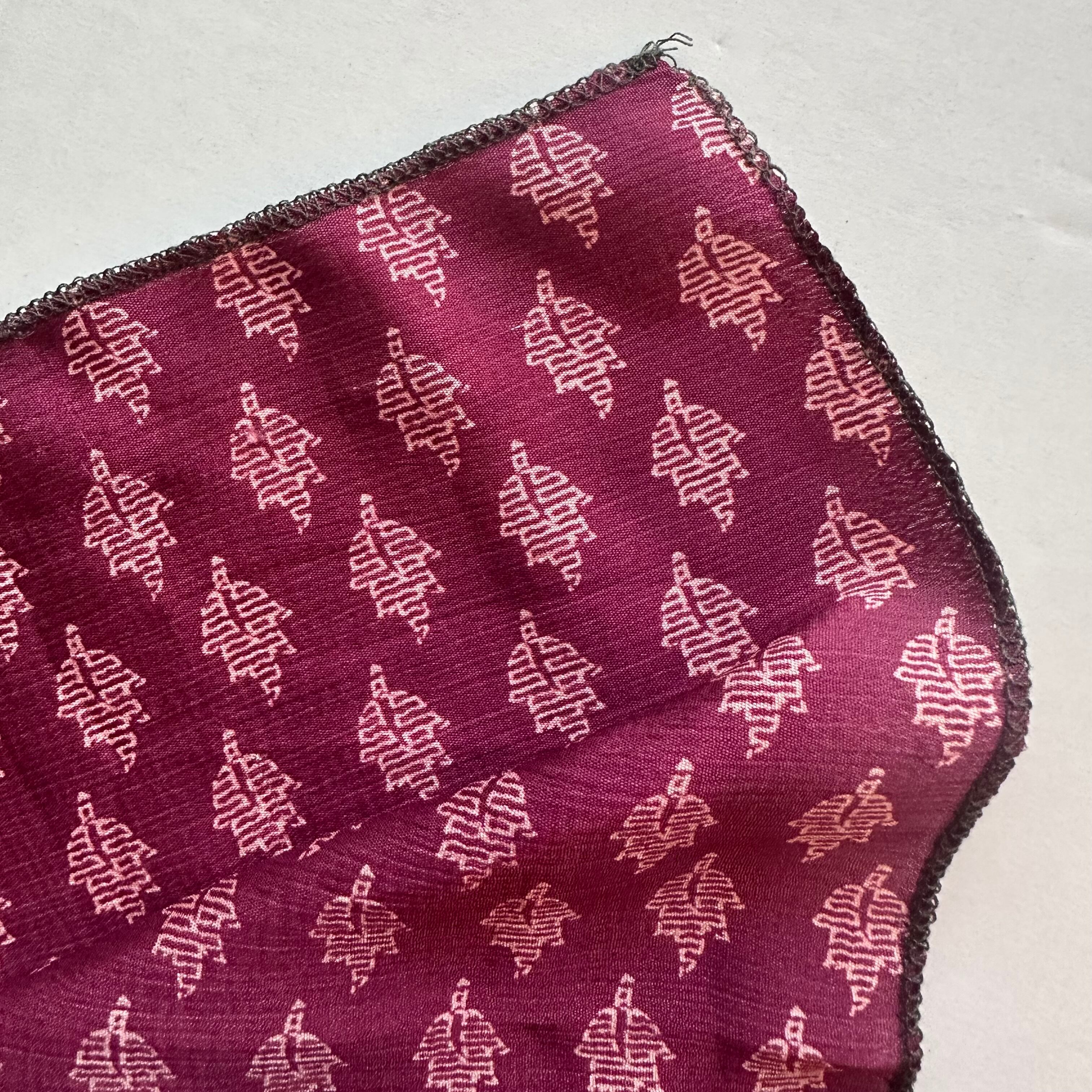 こちらのスカーフは、実際にインドの女性たちにまとわれていたサリーを再利用して仕立てています。