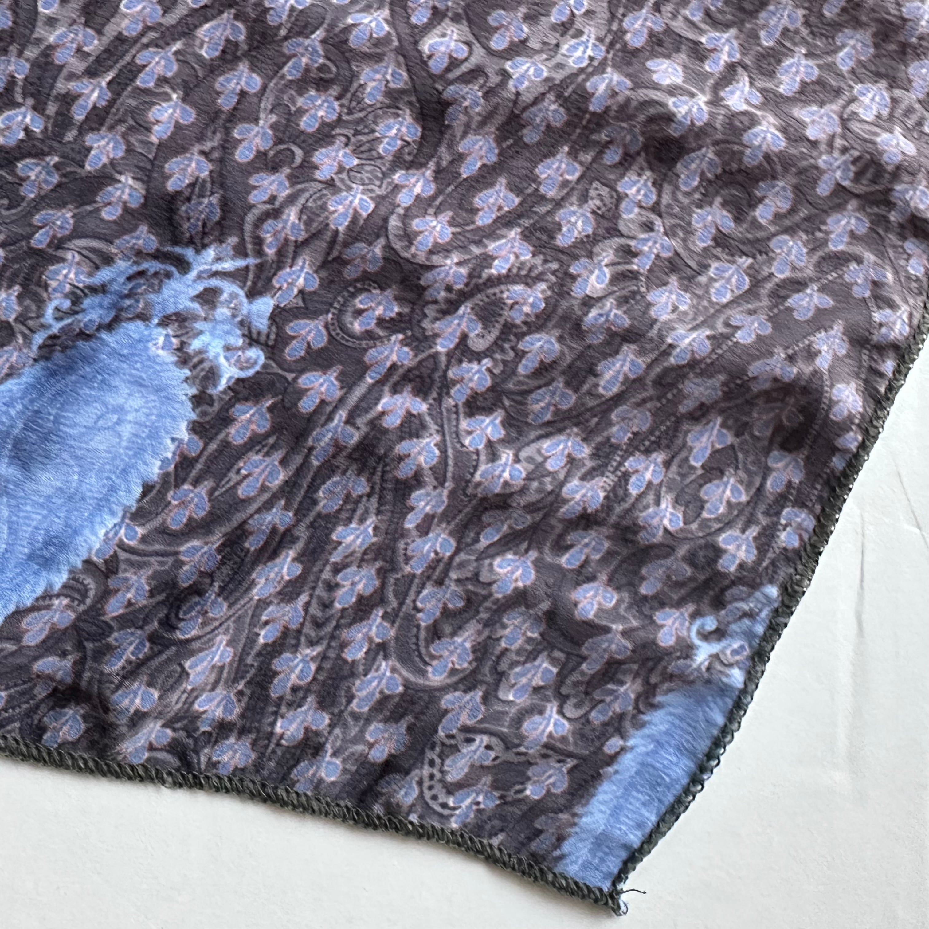 こちらのスカーフは、実際にインドの女性たちにまとわれていたサリーを再利用して仕立てています。