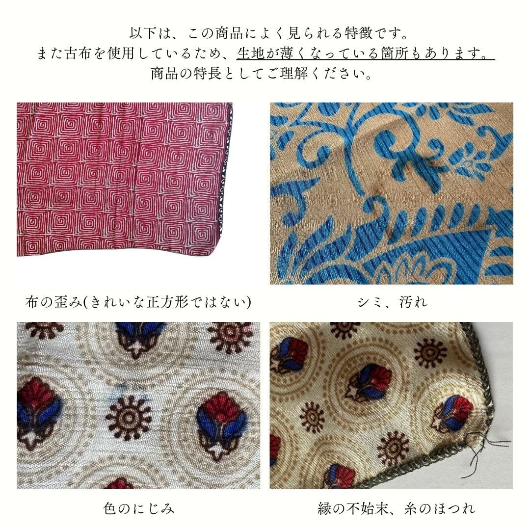 こちらのスカーフは、実際にインドの女性たちにまとわれていたサリーを再利用して仕立てています。