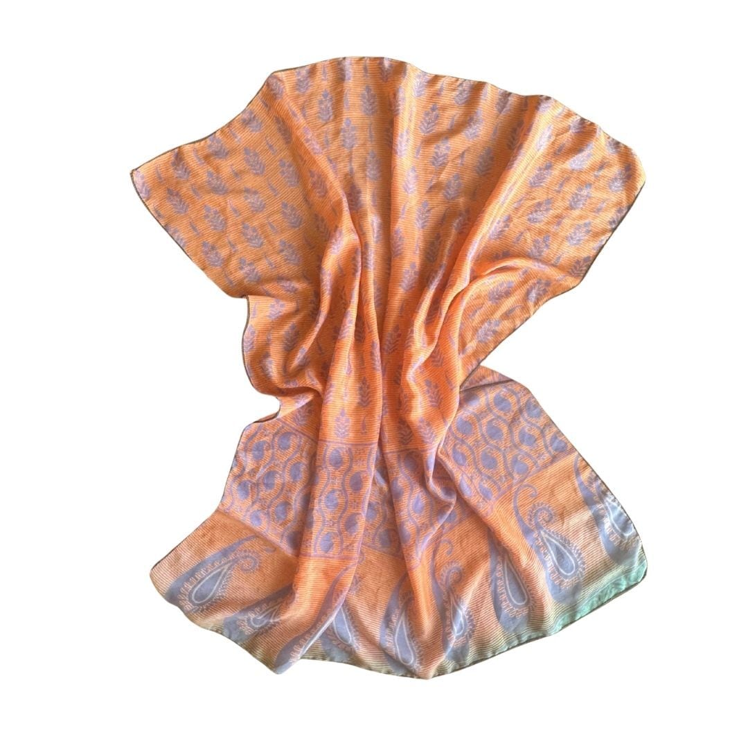 こちらのスカーフは、実際にインドの女性たちにまとわれていたサリーを再利用して仕立てています。