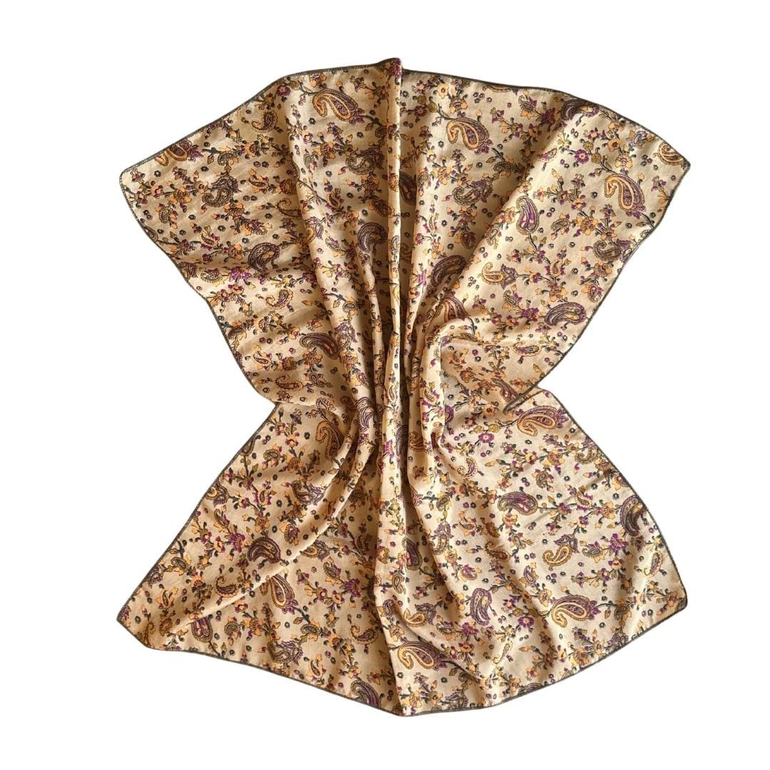 こちらのスカーフは、実際にインドの女性たちにまとわれていたサリーを再利用して仕立てています。