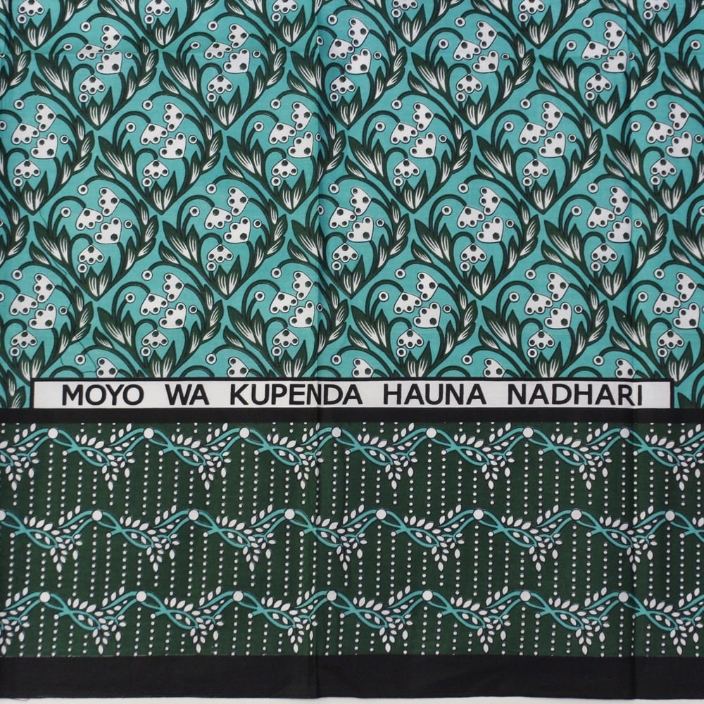 02-B 緑[愛する心に定義はない]カンガ布 MOYO WA KUPENDA HAUNA NADHARI