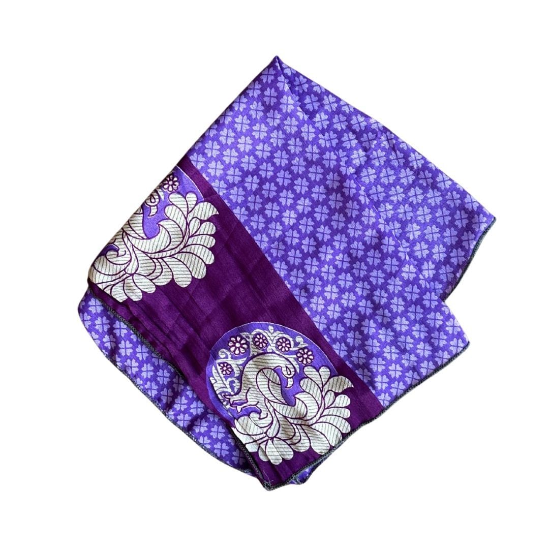 こちらのスカーフは、実際にインドの女性たちにまとわれていたサリーを再利用して仕立てています。