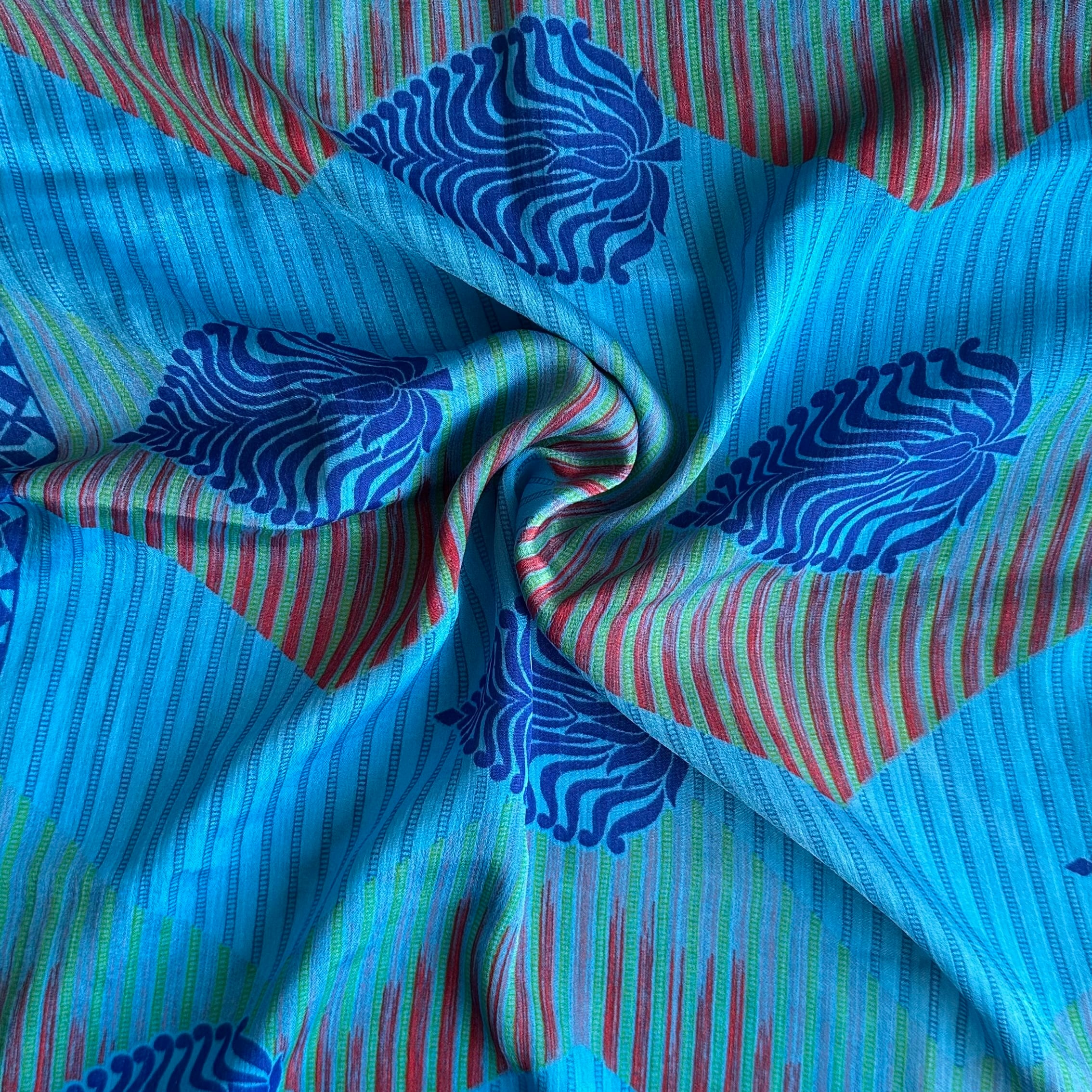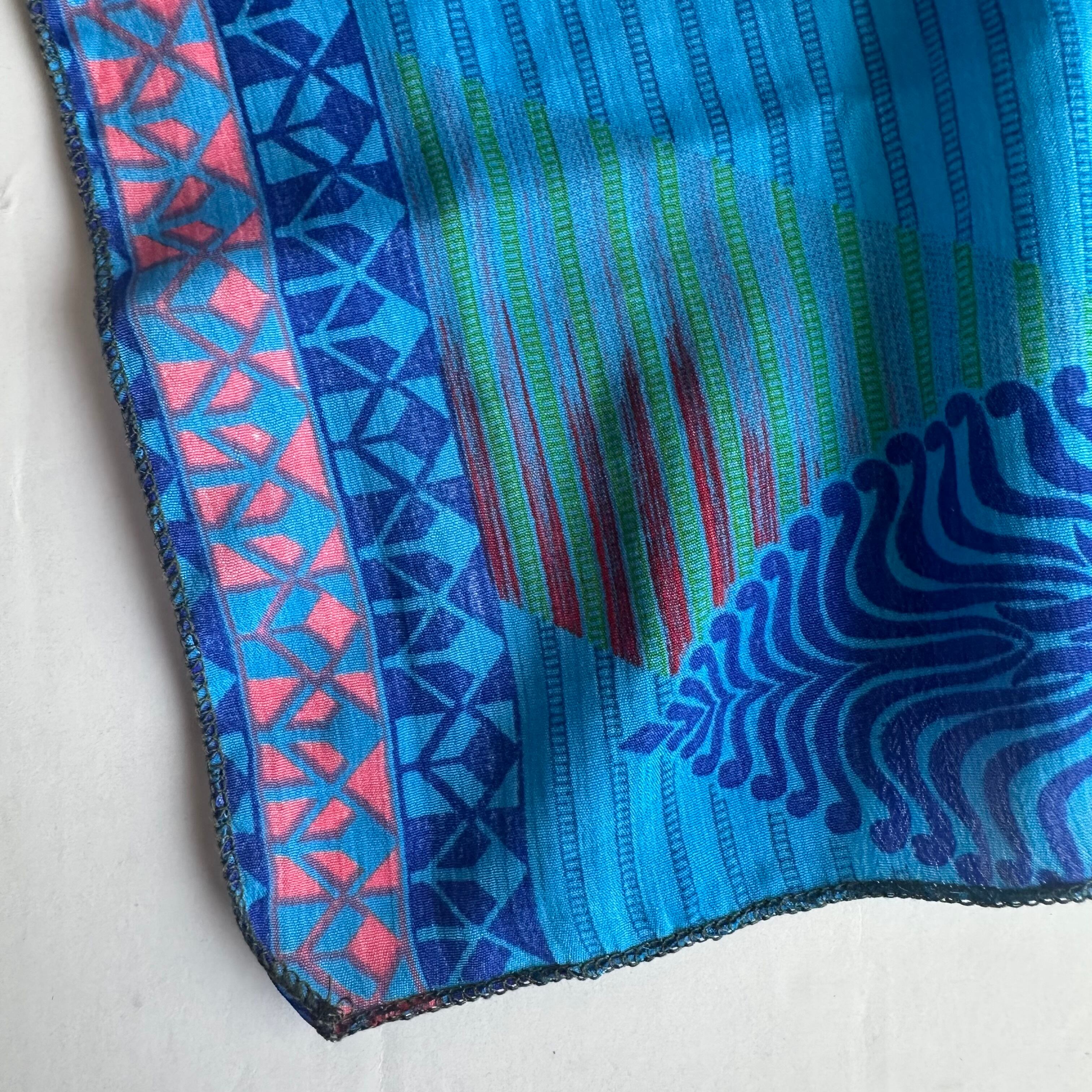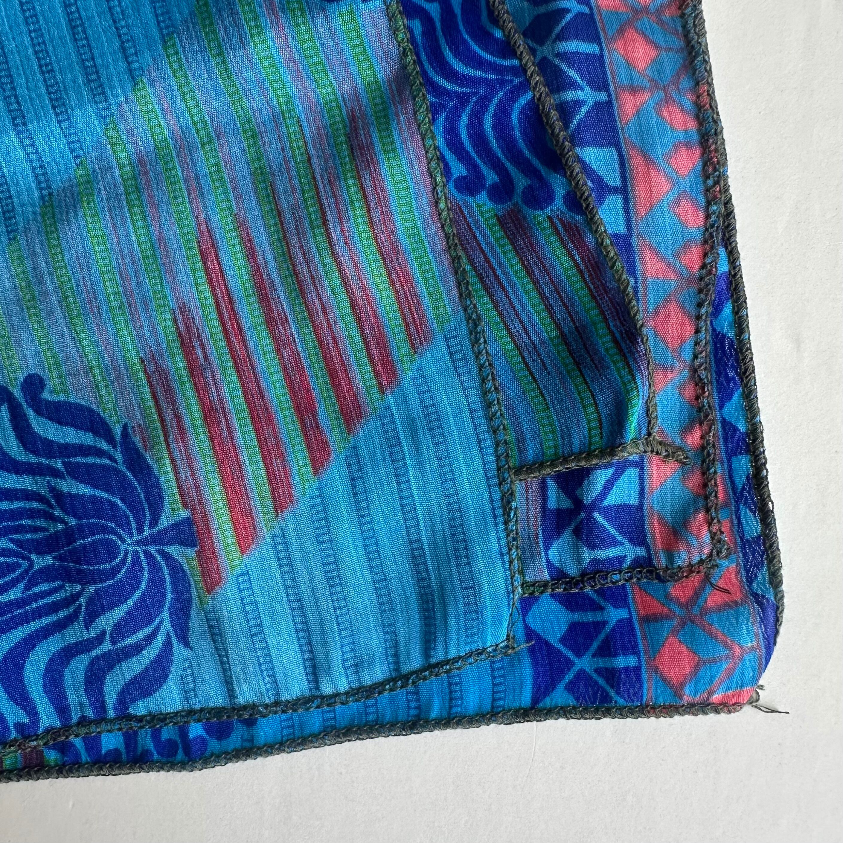 こちらのスカーフは、実際にインドの女性たちにまとわれていたサリーを再利用して仕立てています。