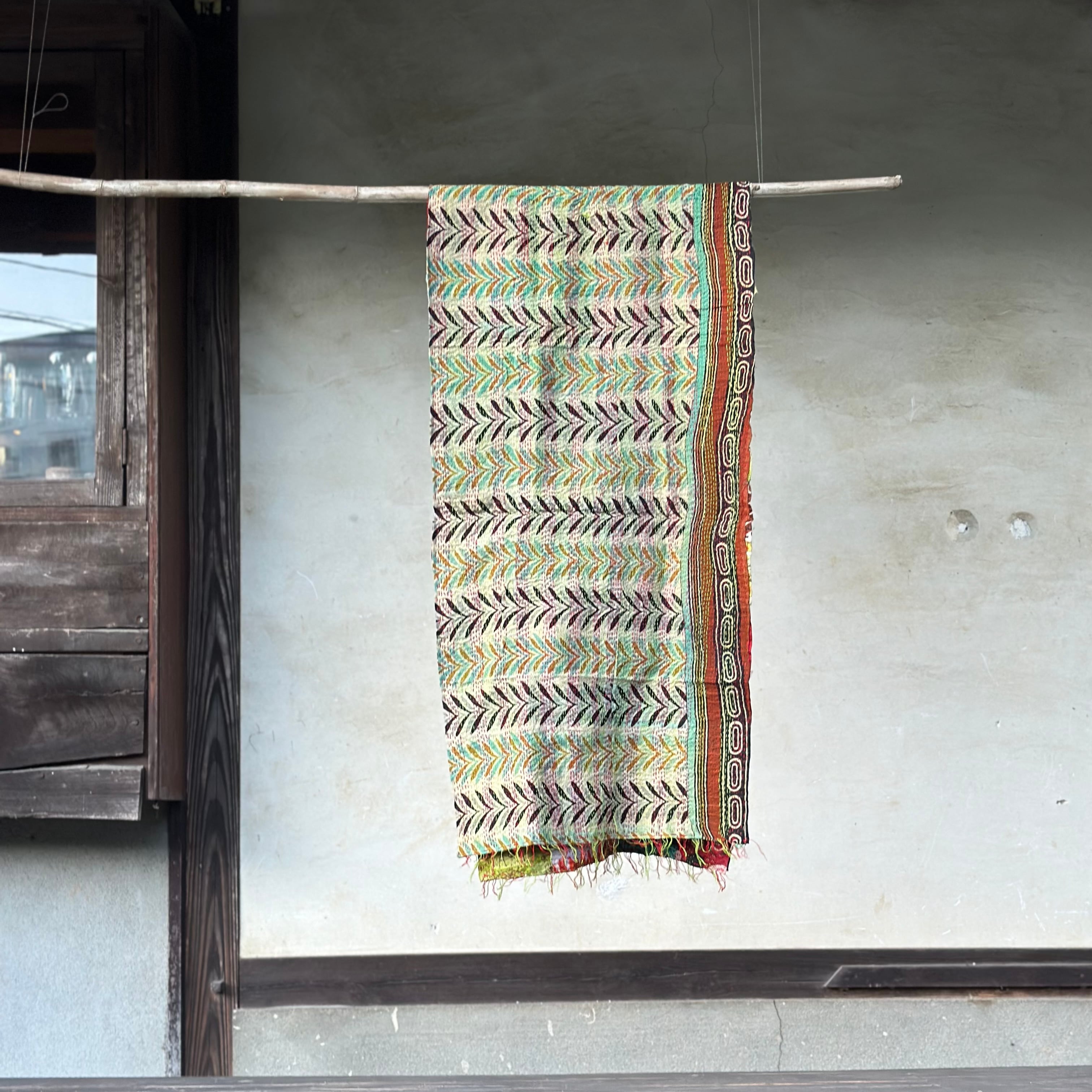 古布を用いたカンタ(刺し子刺繍)のリバーシブルストールです。