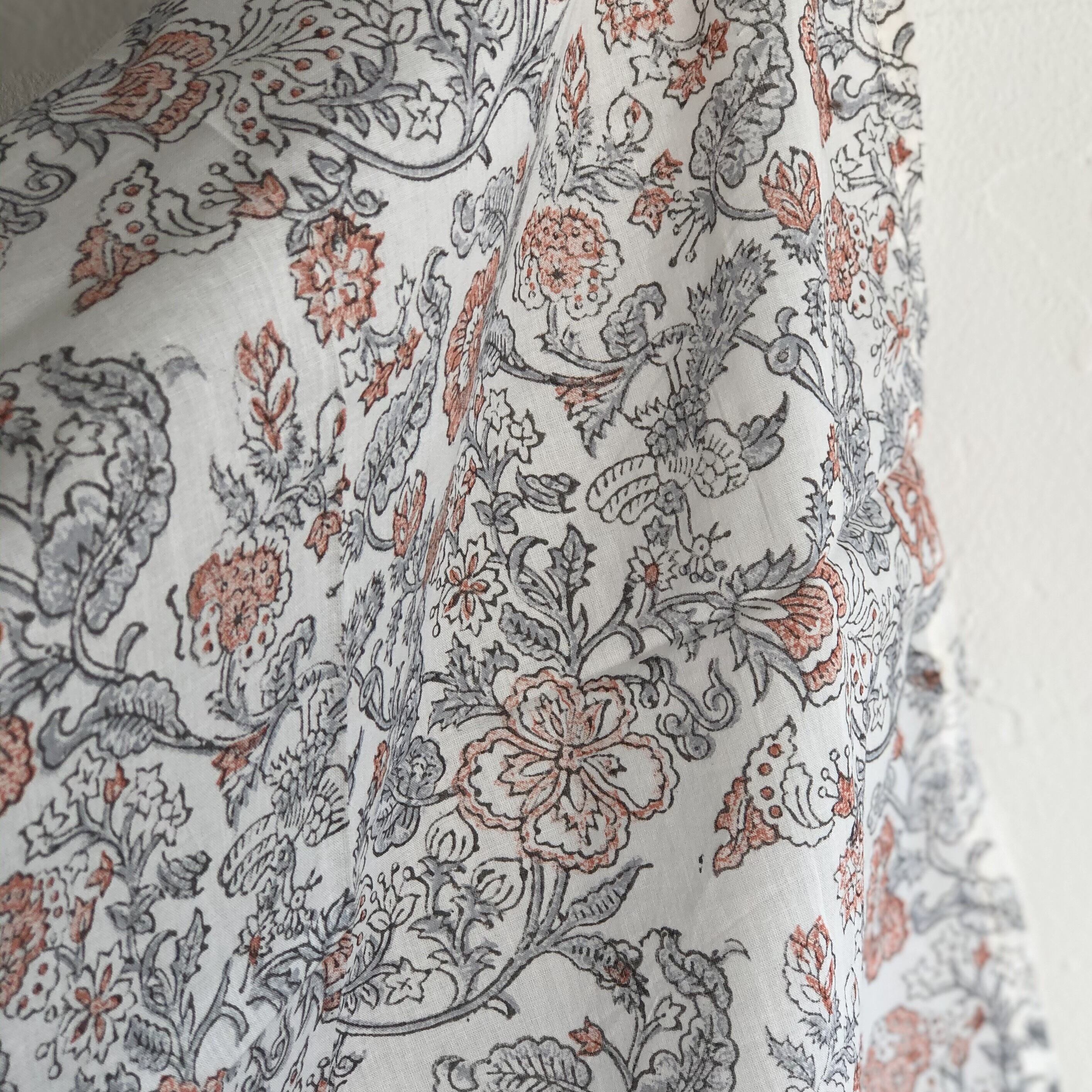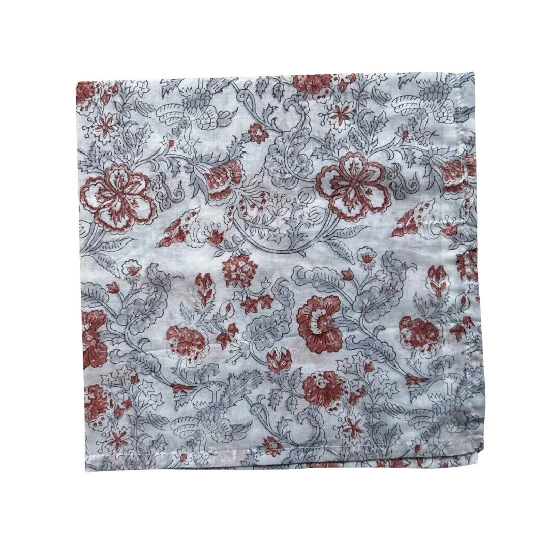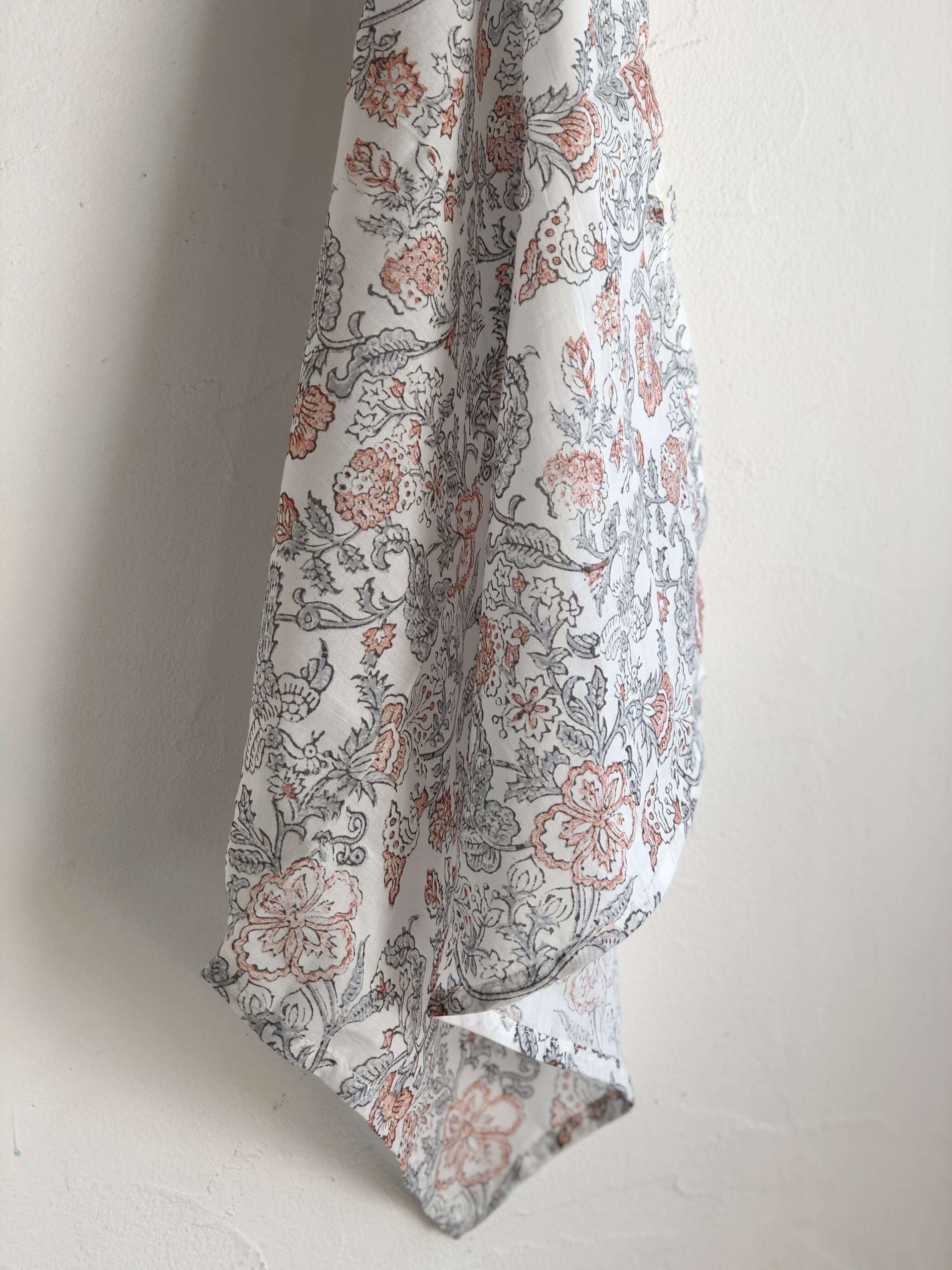 No.30 | インドの木版染めハンカチ | 白 ピンク花