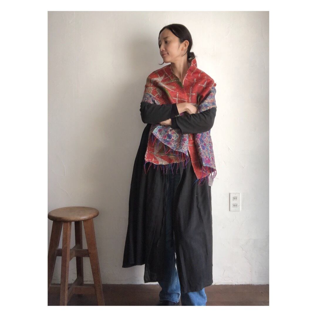 色んな柄がまざりあい、1点もののカンタショールは、着こなしのアクセントに。素朴であたたかいぬくもりが感じられる手仕事の魅力が詰まったアイテムです。