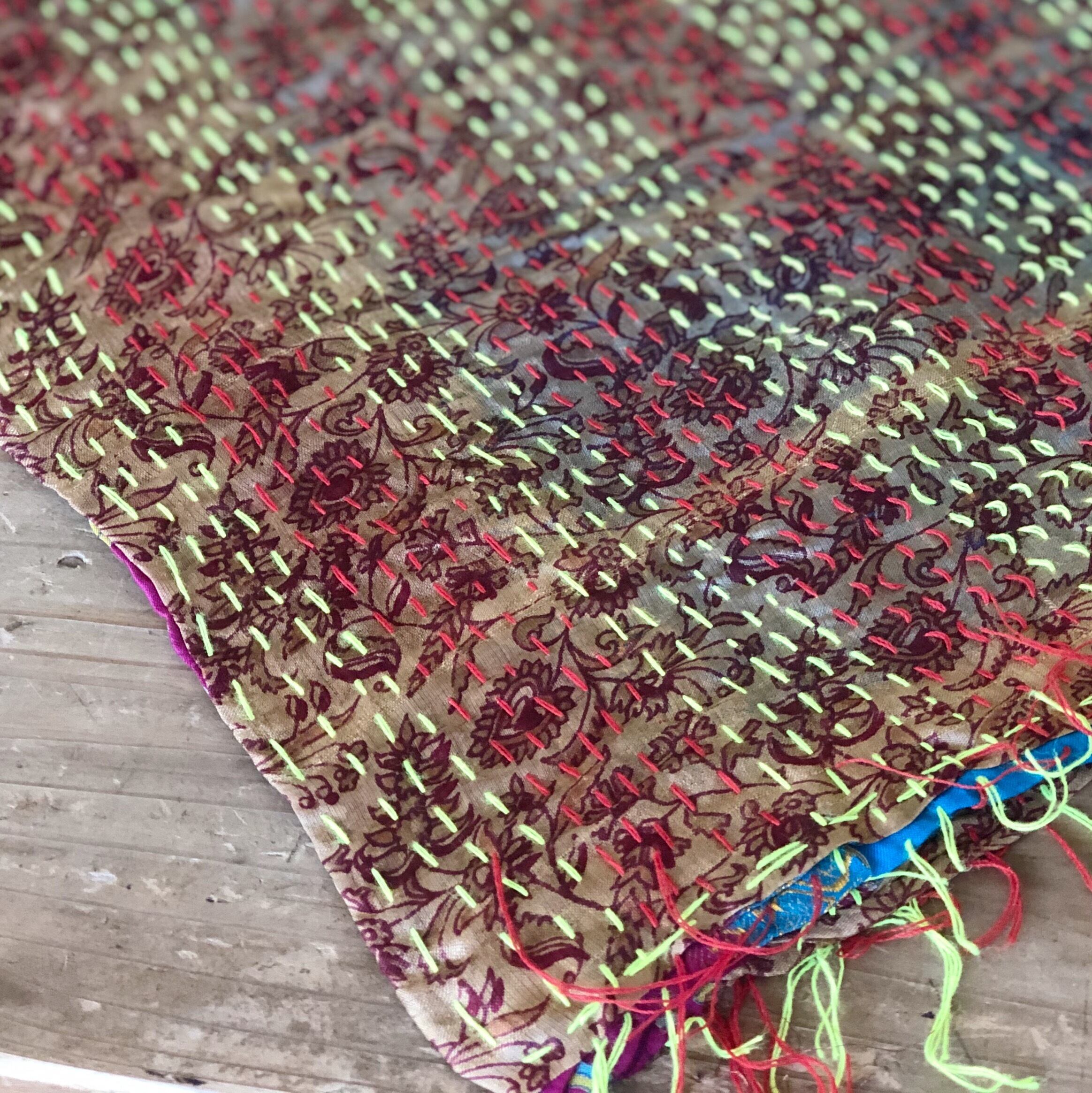 古布を用いたカンタ(刺し子刺繍)のリバーシブルストールです。