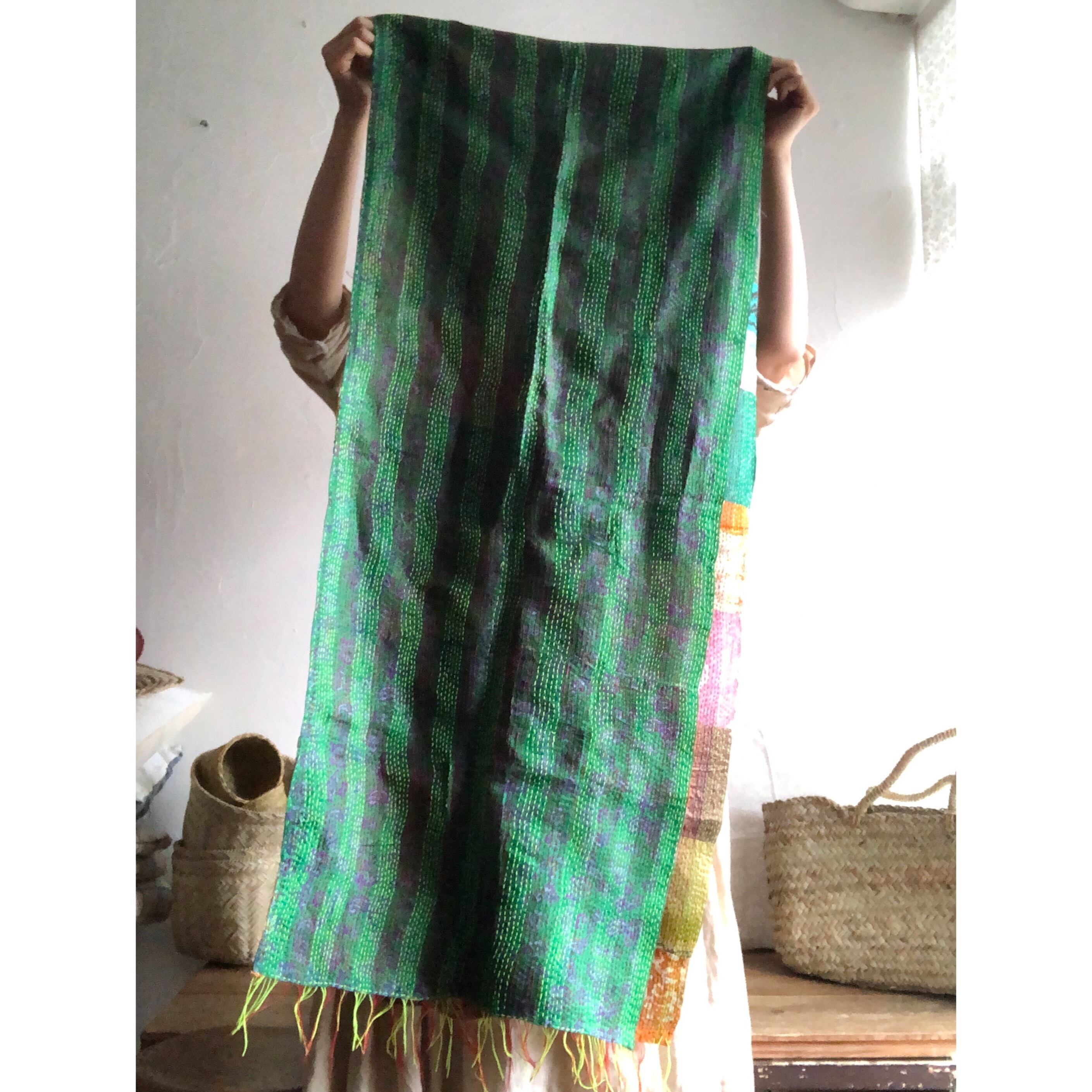 古布を用いたカンタ(刺し子刺繍)のリバーシブルストールです。