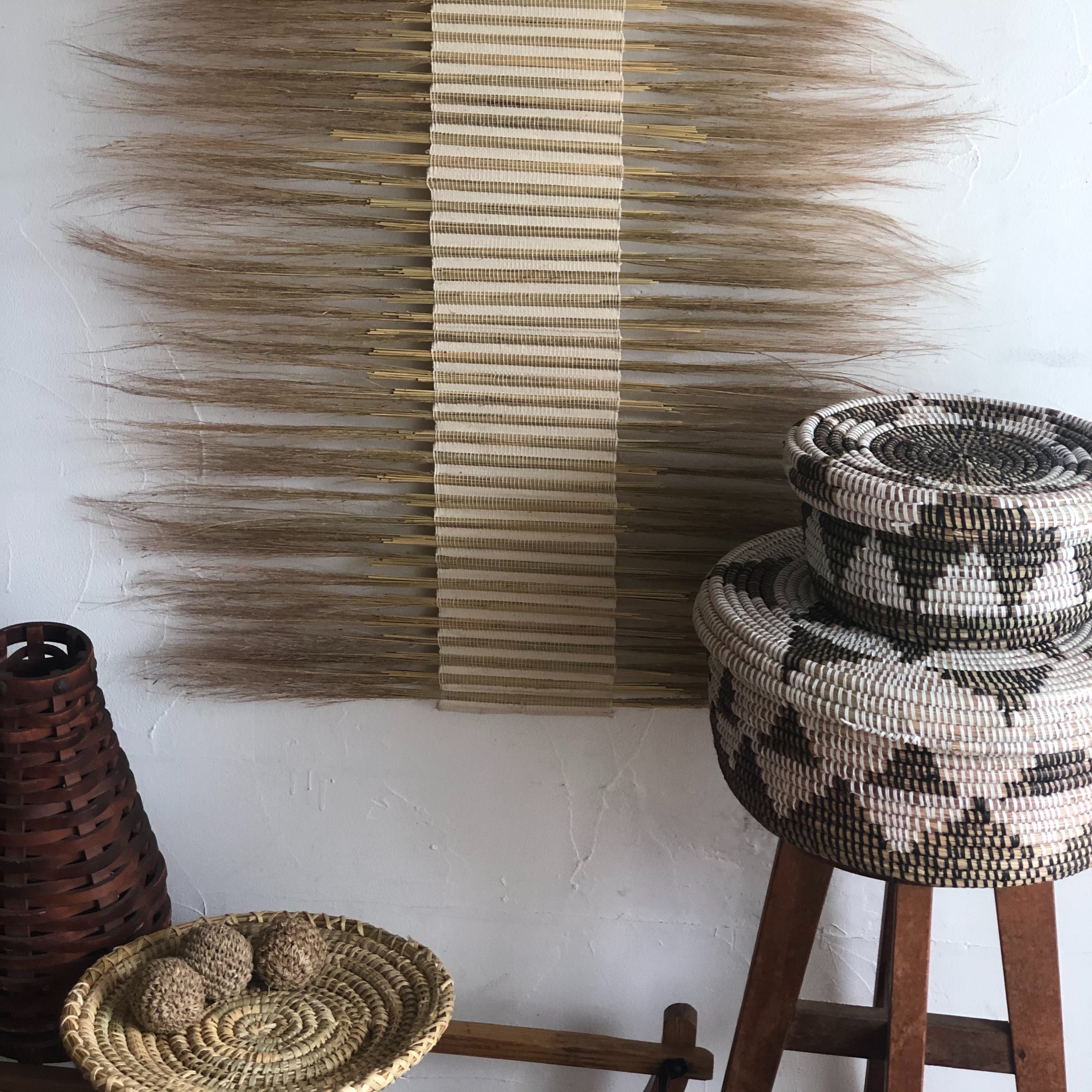 藁を織り込んだ美しいコットンタペストリー。自然素材を生かしたモダンなデザインは、和の雰囲気にも合います。