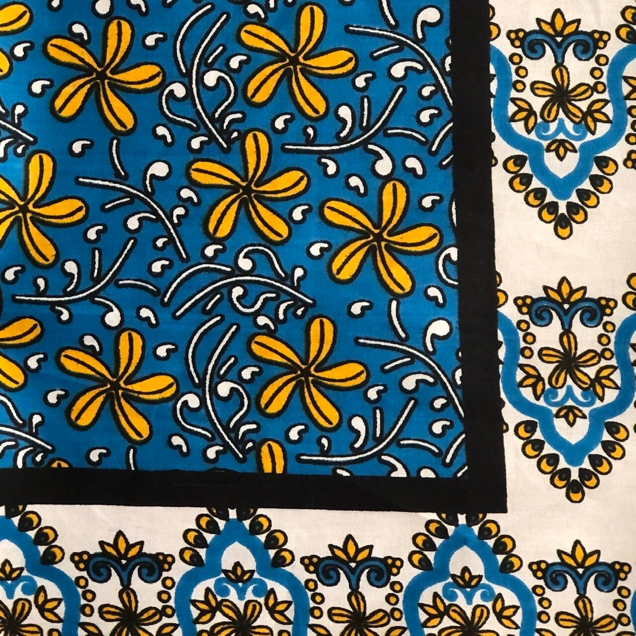 ※若干のほつれや織りむらなどがございます。現地制作ですので、商品の特徴としてお楽しみください。※縁縫いはざっくり大雑把ですし、形も長方形ではなく、歪みがあります。プリントの滲みやインクの飛びなどもあります。民族布に親しみのある方におすすめいたします。