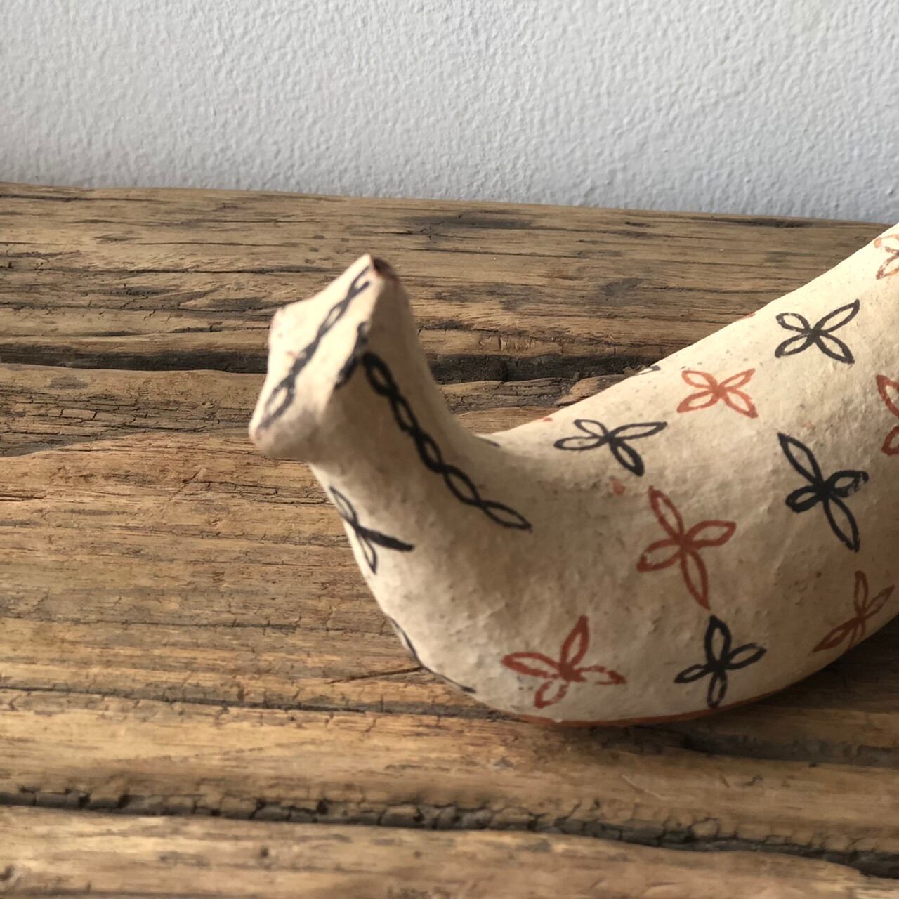 古代芸術の粋ともいえるデザインとフォルムのモロッコベルベルの鳥の置物。伝統的な北モロッコのリーフ地方の村々で紀元前から作られ、生活の中で使われてきた陶器です。