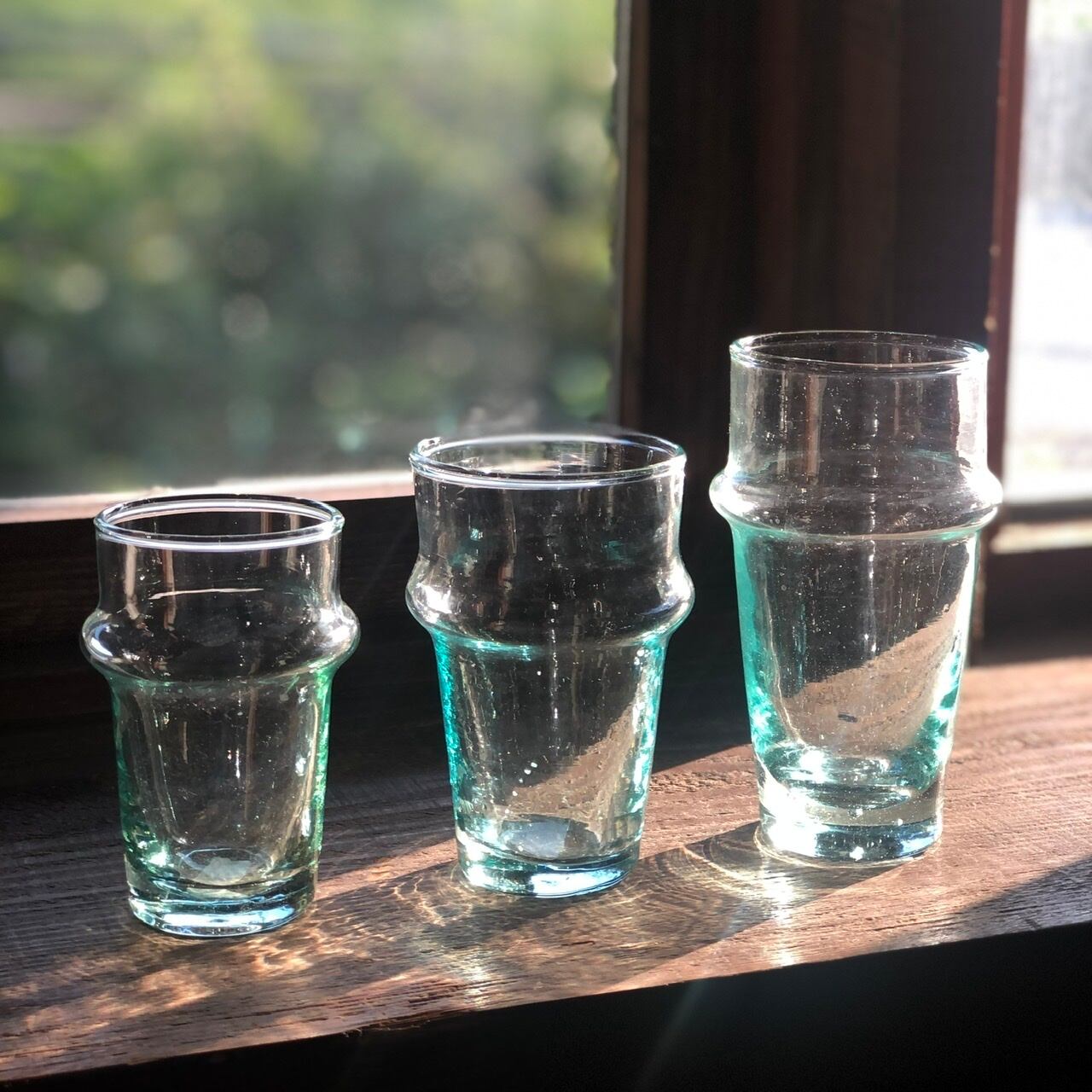 お茶を飲むコップとしてだけで無く、アイスクリームを入れてミニパフェを作ったりるお花を飾ったりしても素敵です。少しいびつな手作り感がこのモロッコグラスの魅力でもあります。