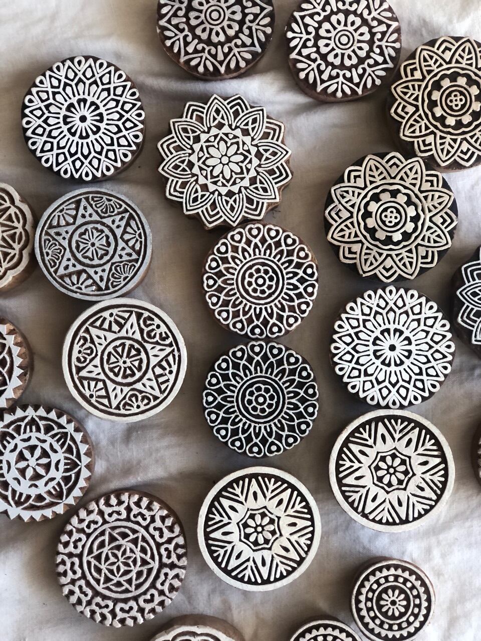 インドでは主に布のプリントに使われているウッドブロック。布やカーテンにスタンプし、自分の好きなように